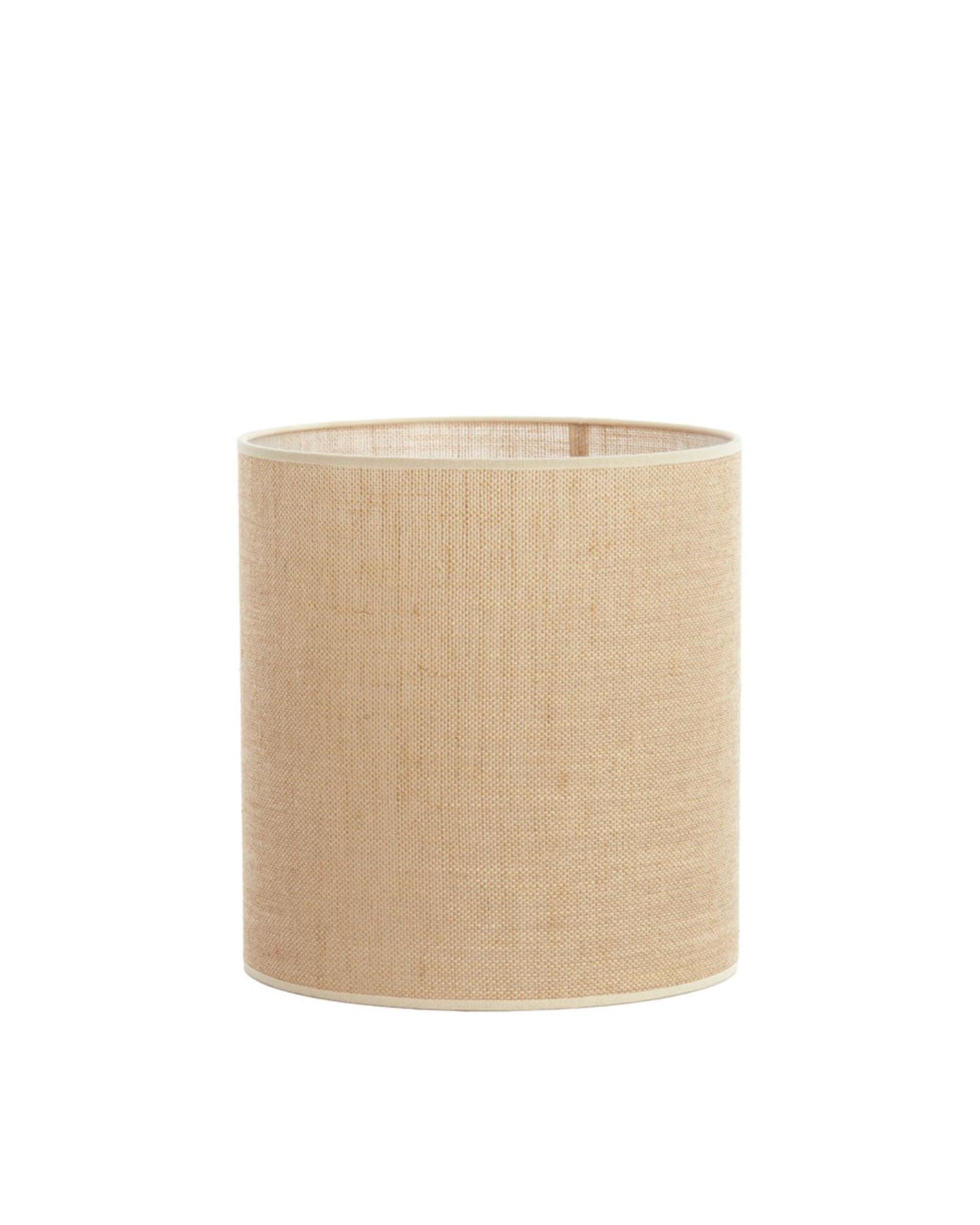 Abat-jour cylindre en textile tissé sable. Pied de lampe et ampoule disponible en magasin et dans la catégorie accessoire de luminaire.