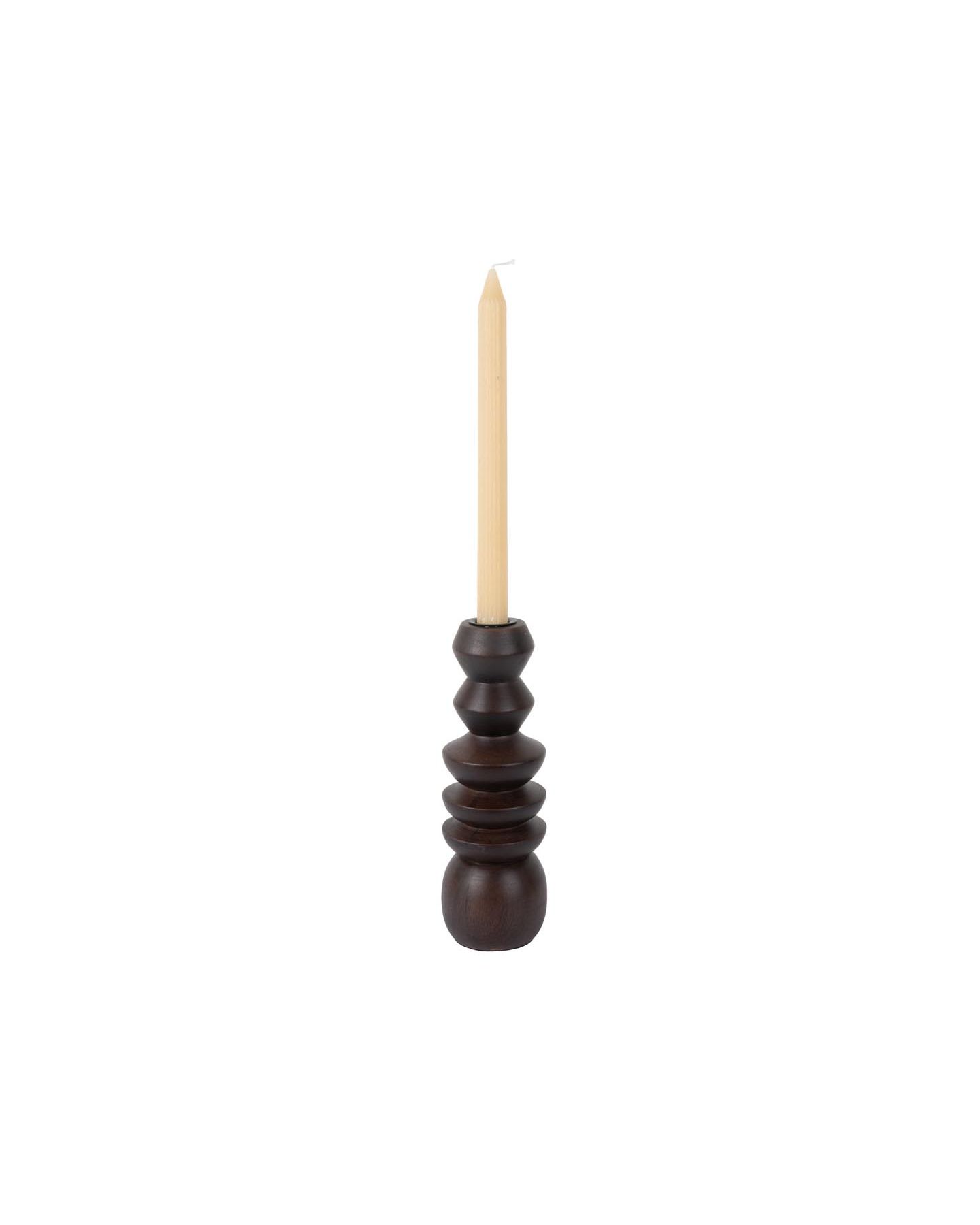 Bougeoir en bois de manguier laqué noisette d'un style moderne et contemporain. A compléter avec une bougie chandelle disponible en magasin et dans la catégorie Bougie et Diffuseur.