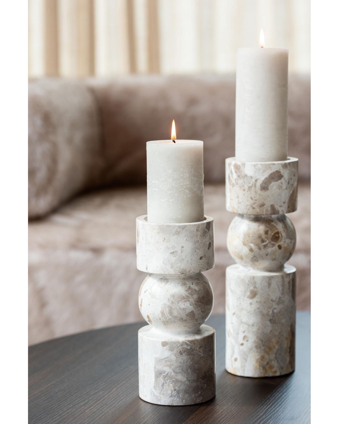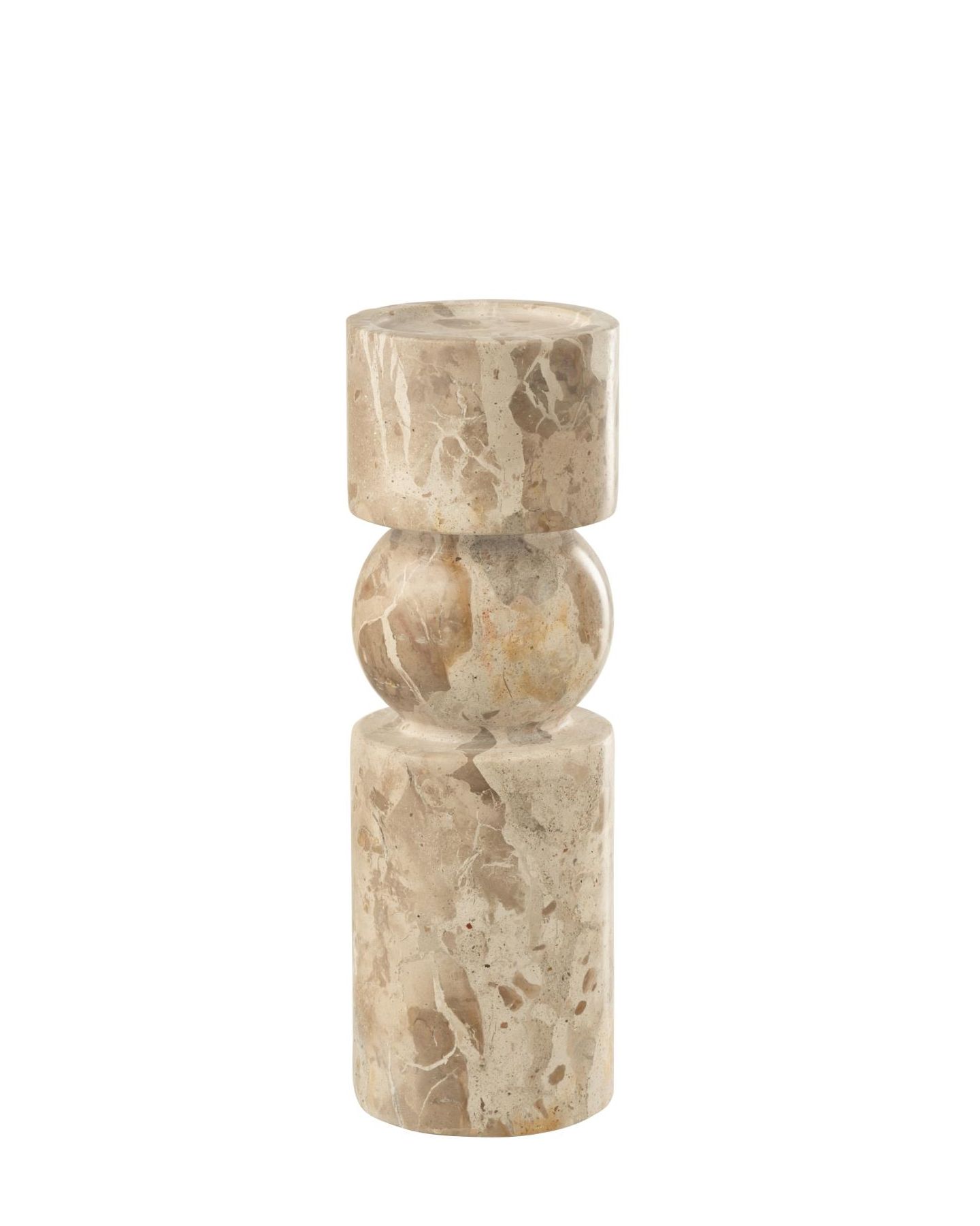 Bougeoir rond en marbre beige sur pied, d'un style contemporain et élégant. A compléter avec une bougie disponible en magasin et dans la catégorie Bougie et Diffuseur.