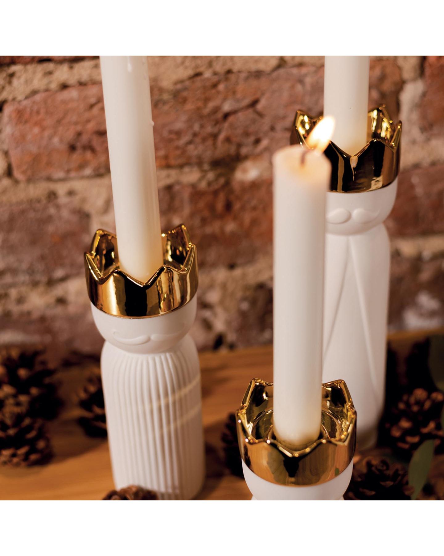 Bougeoir en forme du roi mage Melchior en porcelaine blanc non émaillé avec sa couronne dorée pour une lumière douce et chaleureuse. A compléter avec une bougie disponible en magasin et dans la catégorie Bougie et Diffuseur pour créer une ambiance festive.