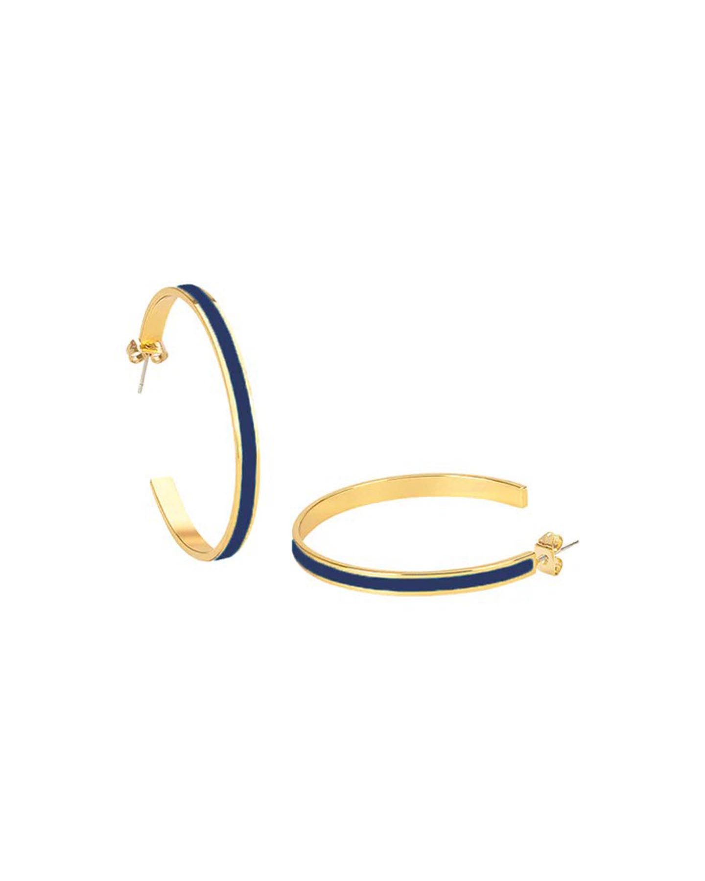 Boucles d'Oreilles Créoles en Laiton Finition Or et Laqué Tige en Acier Bleu Mar
