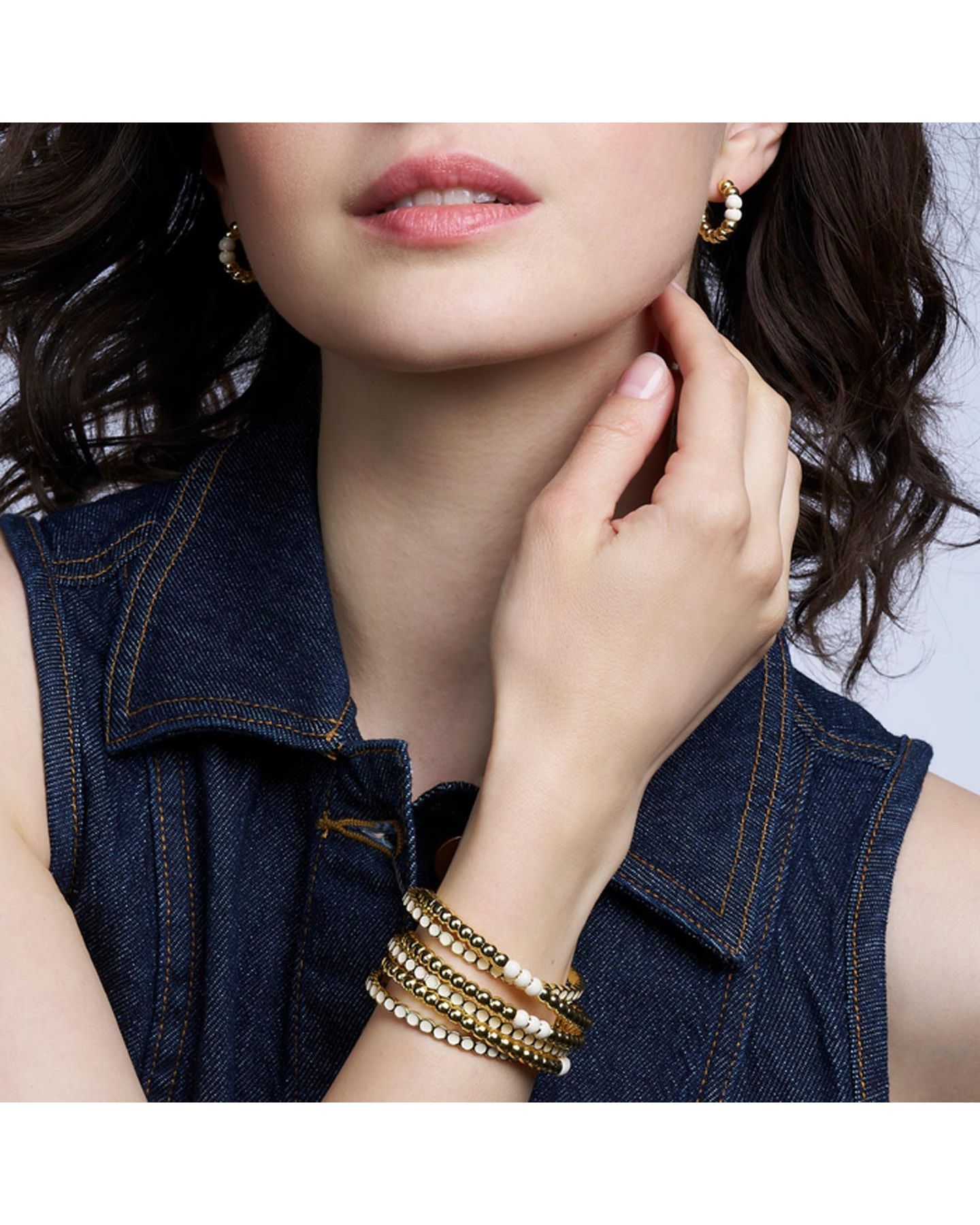 Jonc Fin Ajustable Perles en Laiton Finition Or avec Email Blanc Sable