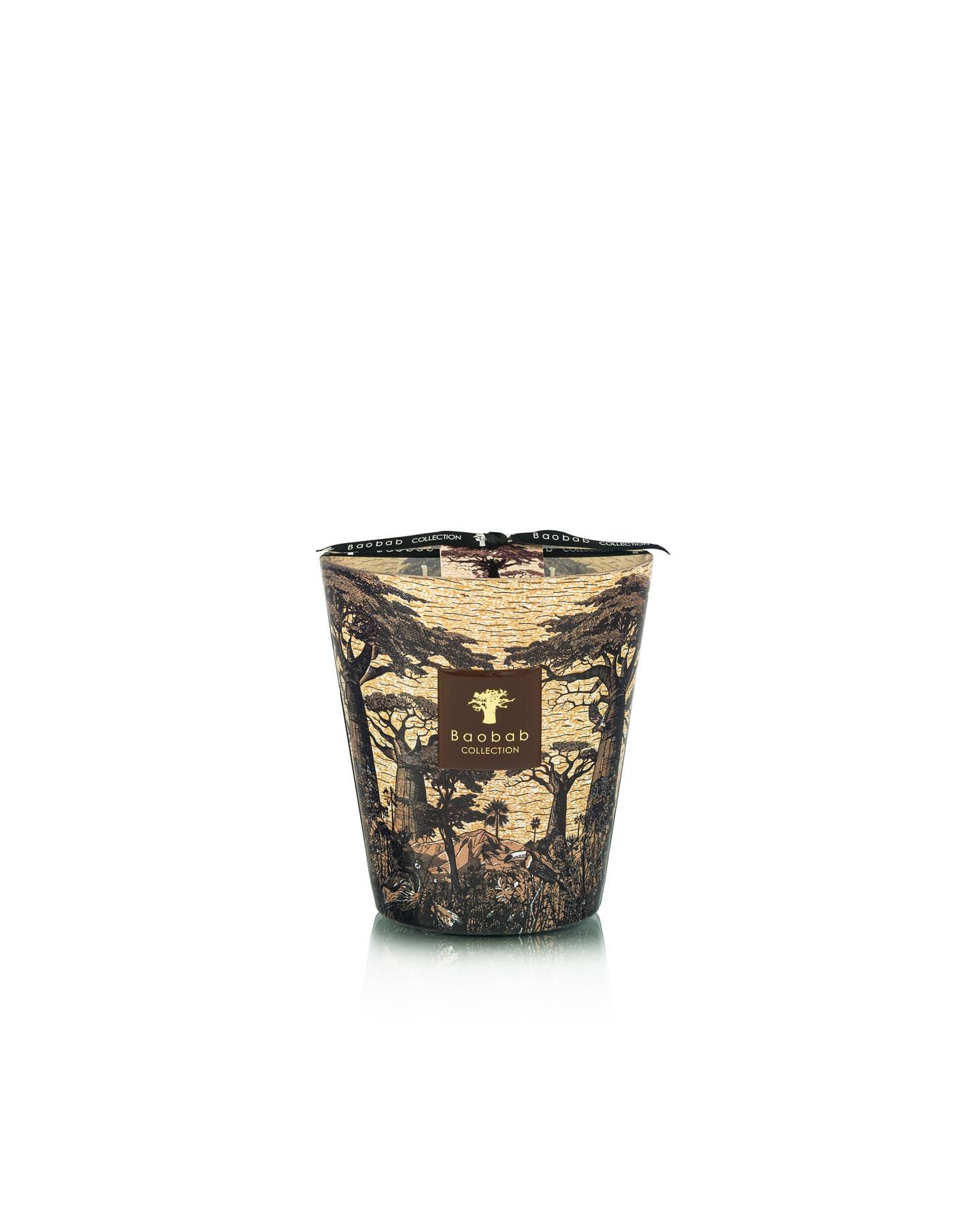 Bougie parfumée en cire d'une grande qualité fabriquée à la main dans les ateliers Baobab en Europe. Avec quatre mèches en coton égyptien, cette bougie parfumée est versée à la main dans une vase en verre soufflé bouche avec un dessin unique.