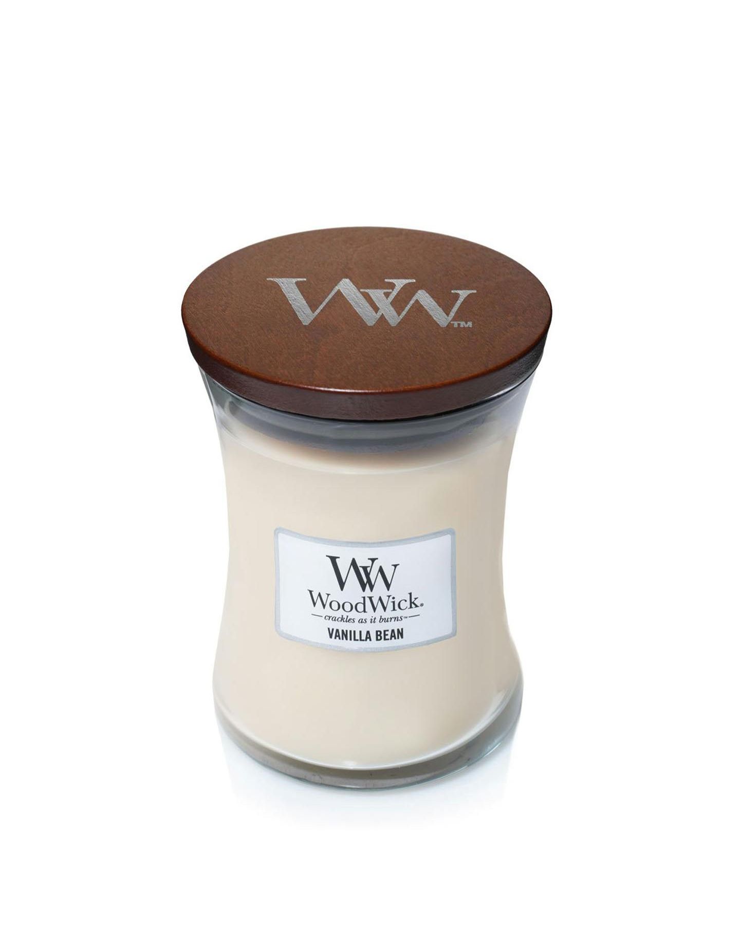 Format : Bougie sablier moyenne en verre avec une mèche en bois crépitante.