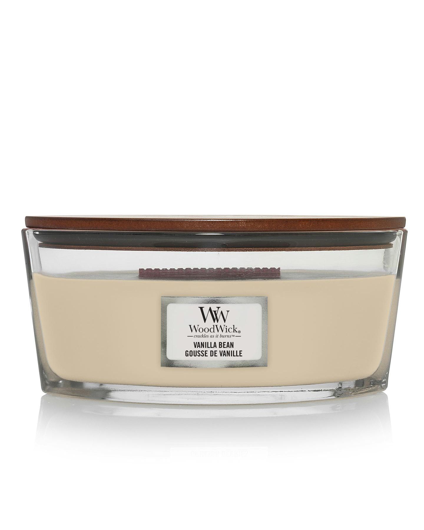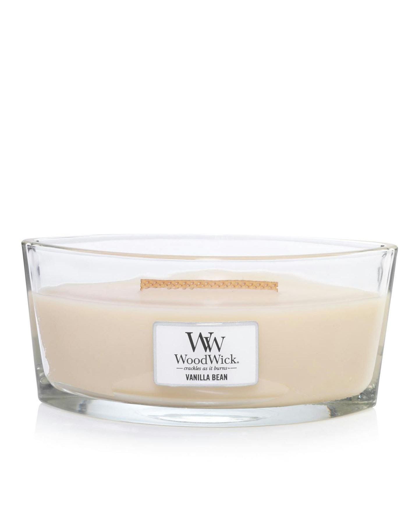 Format : Bougie ovale en verre avec une mèche en bois crépitante.