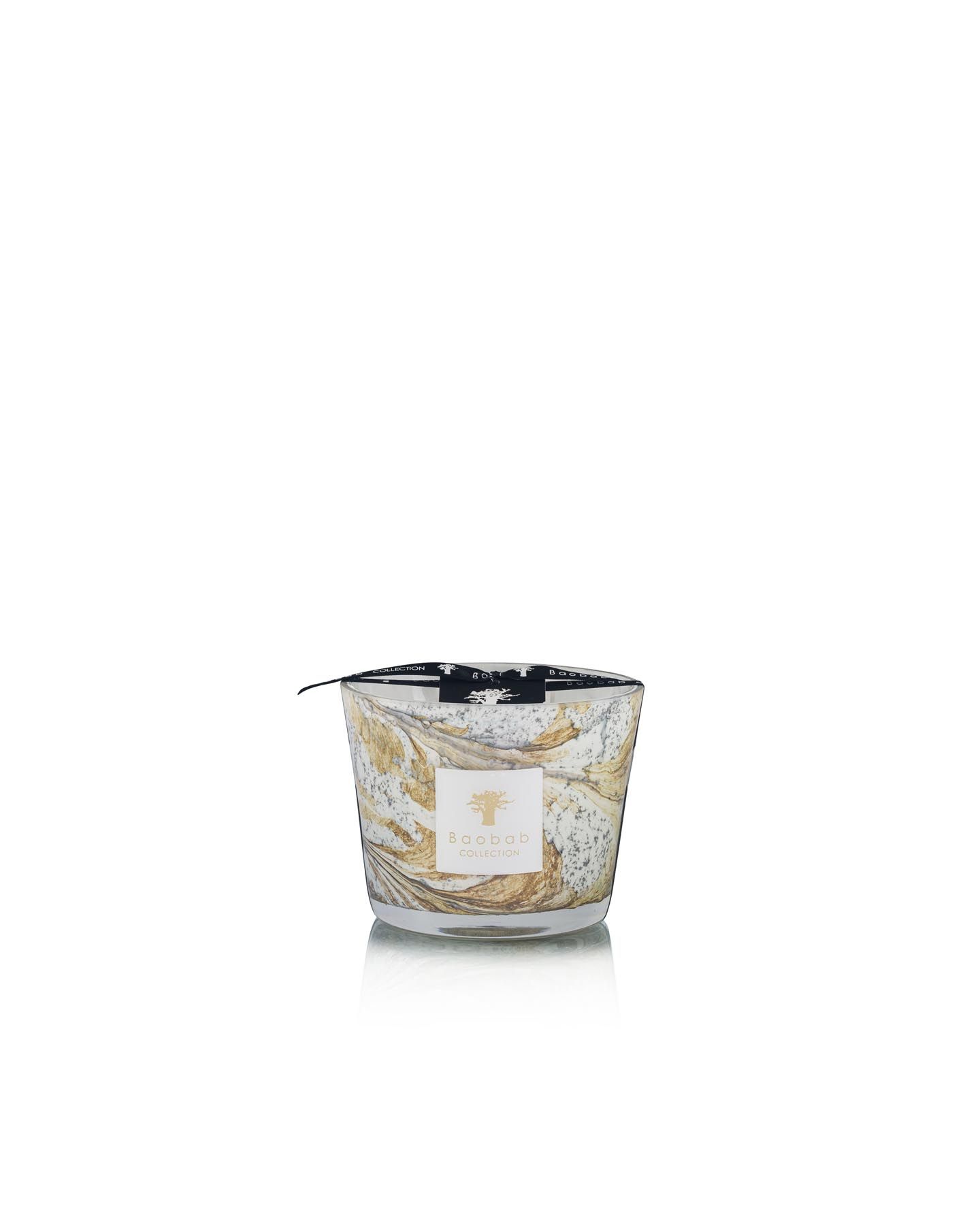 Bougie parfumée en cire d'une grande qualité fabriquée à la main dans les ateliers Baobab en Europe. Avec 4 mèches en coton égyptien, cette bougie parfumée est versée à la main dans une vase en verre soufflé bouche avec un dessin unique.