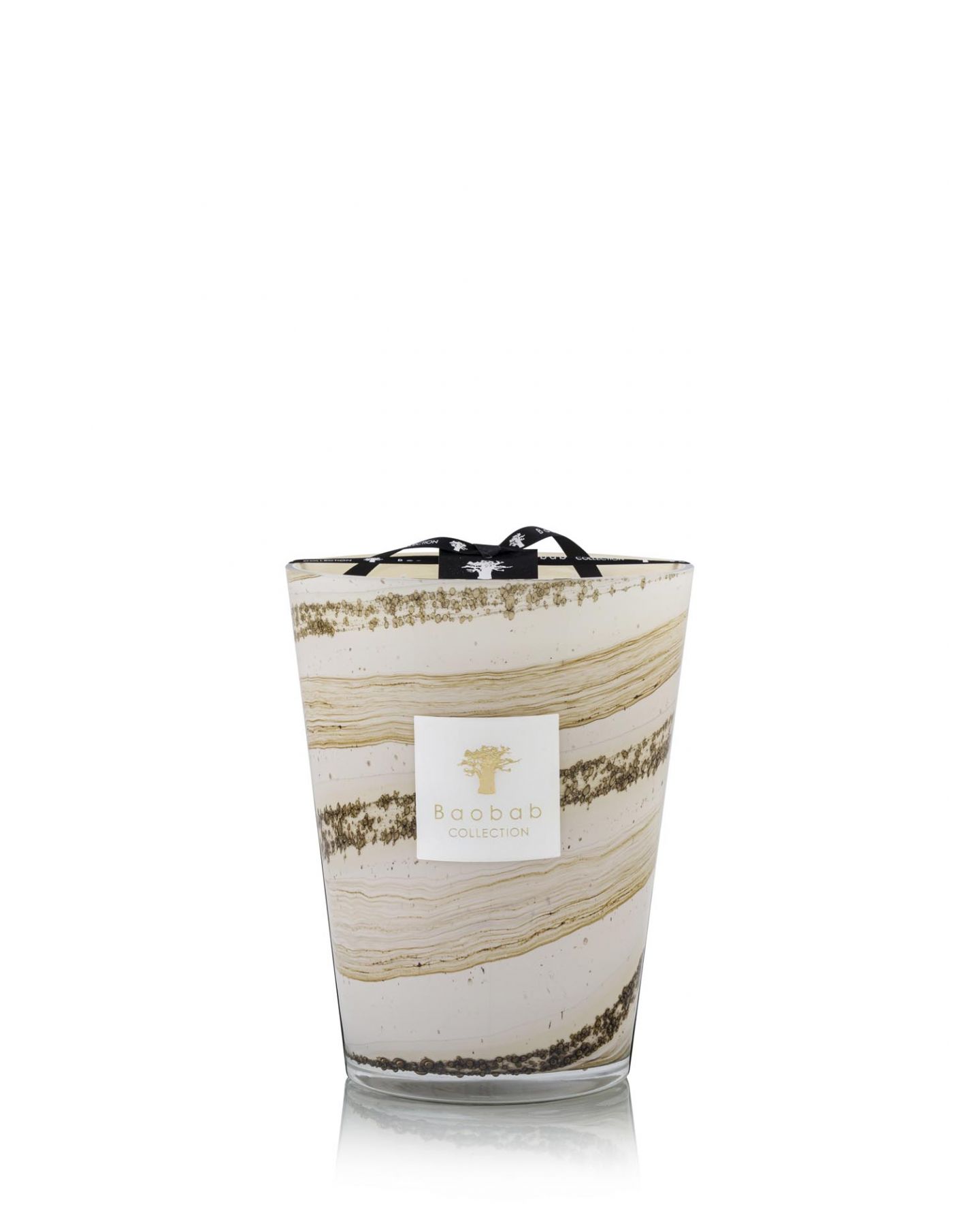 Le verre soufflé bouche de la bougie parfumée Siloli est un camaïeu de beige et brun sur lequel des lignes horizontales sont parsemées de petites alvéoles organiques et aléatoires. Chaque verre est unique et la couleur sable se dissout dans la matière grâce au souffle de l’homme.