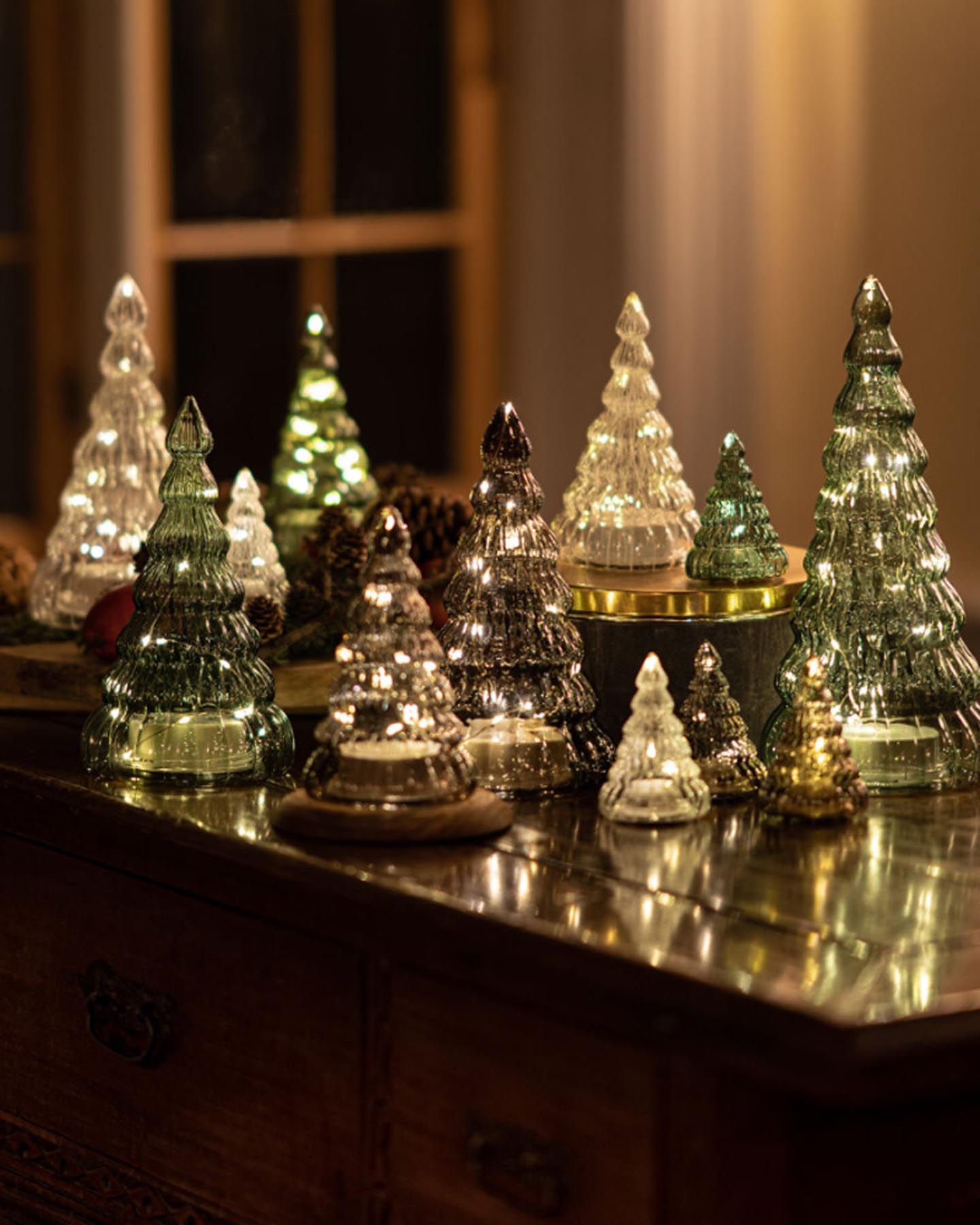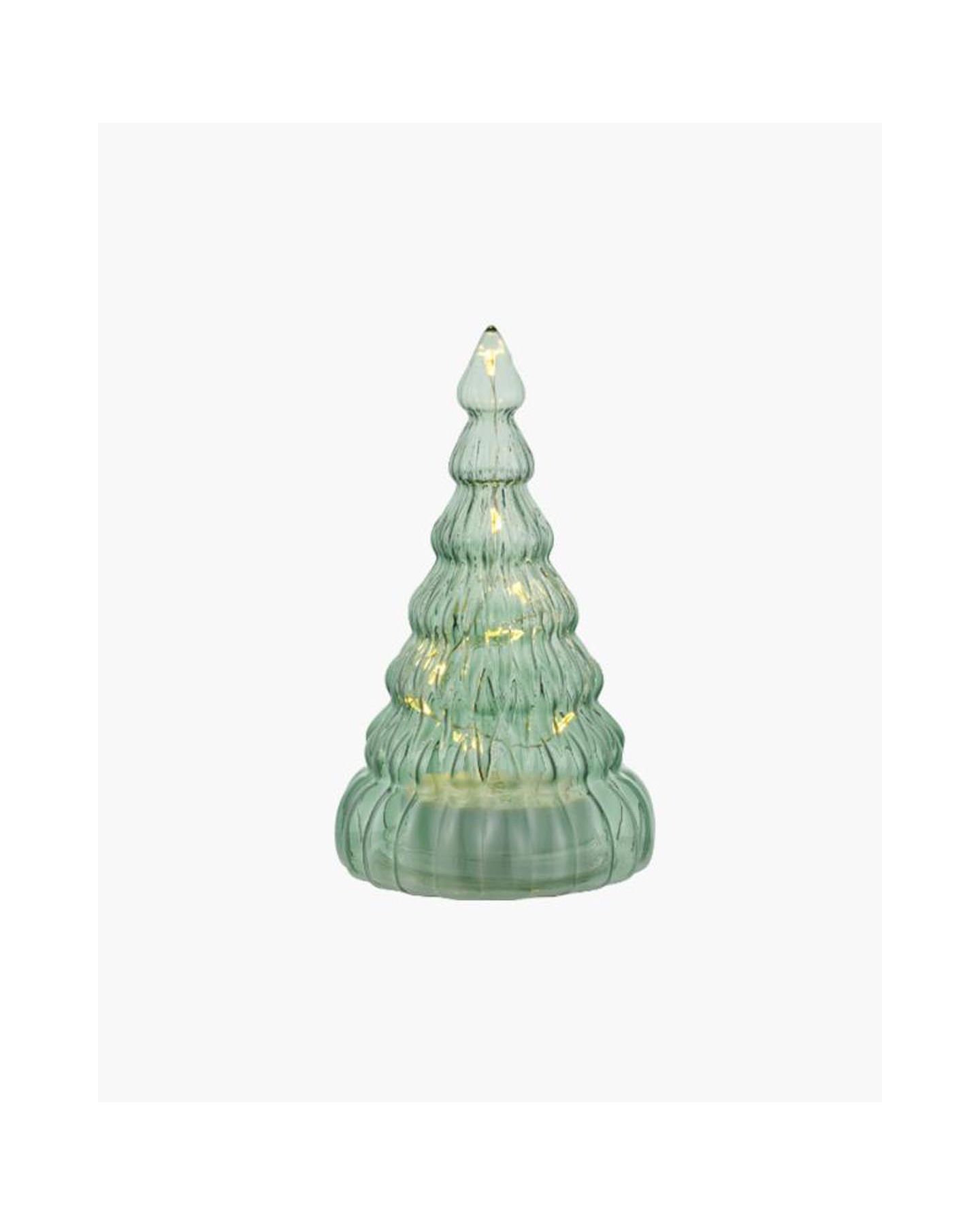 Décoration lumineuse en verre vert en forme de sapin dotée de 10 LED lumières pour décorer et éclairer votre intérieur et vos tables de fêtes pendant les mois d'hiver. Notre décoration de sapin de Noël est parfaite pour tous ceux qui aiment la décoration de Noël moderne et élégante.