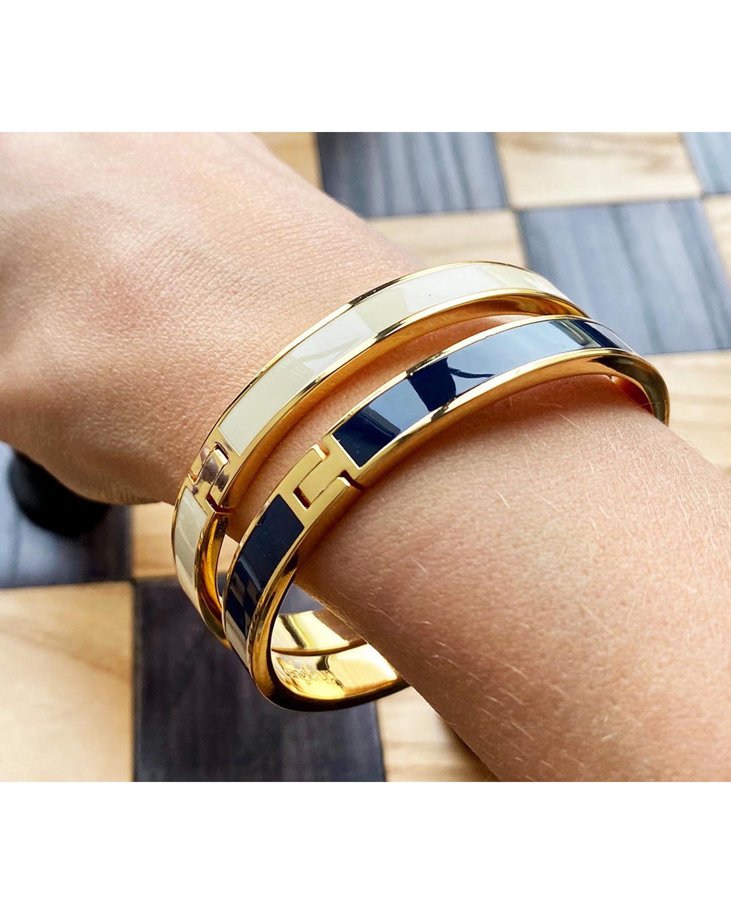 Bracelet À Fermoir En Métal Doré Laqué , Couleur Blanc Sable