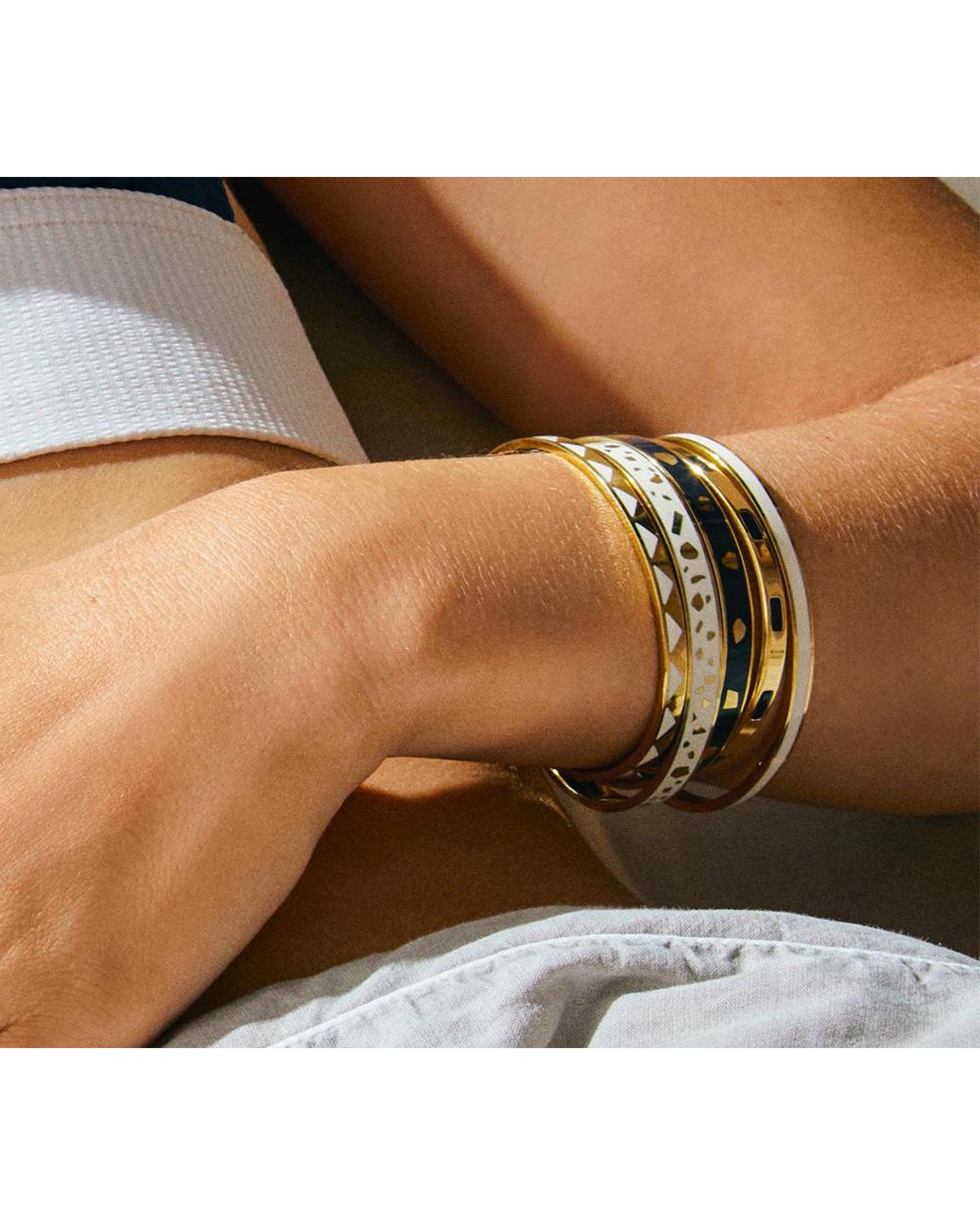 Élégant et raffiné, ce bracelet jonc est fabriqué à partir de laiton trempé dans un bain d’or fin et laqué des couleurs de saison pour un style chic et élégant. Forme fermé, ce bracelet aux couleurs lumineuses est à porter sans hésitation pour un look sophistiqué.