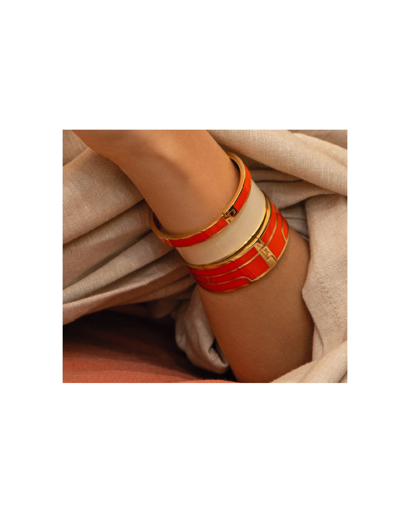 Bracelet À Fermoir En Métal Doré Laqué , Couleur Orange Tangerine