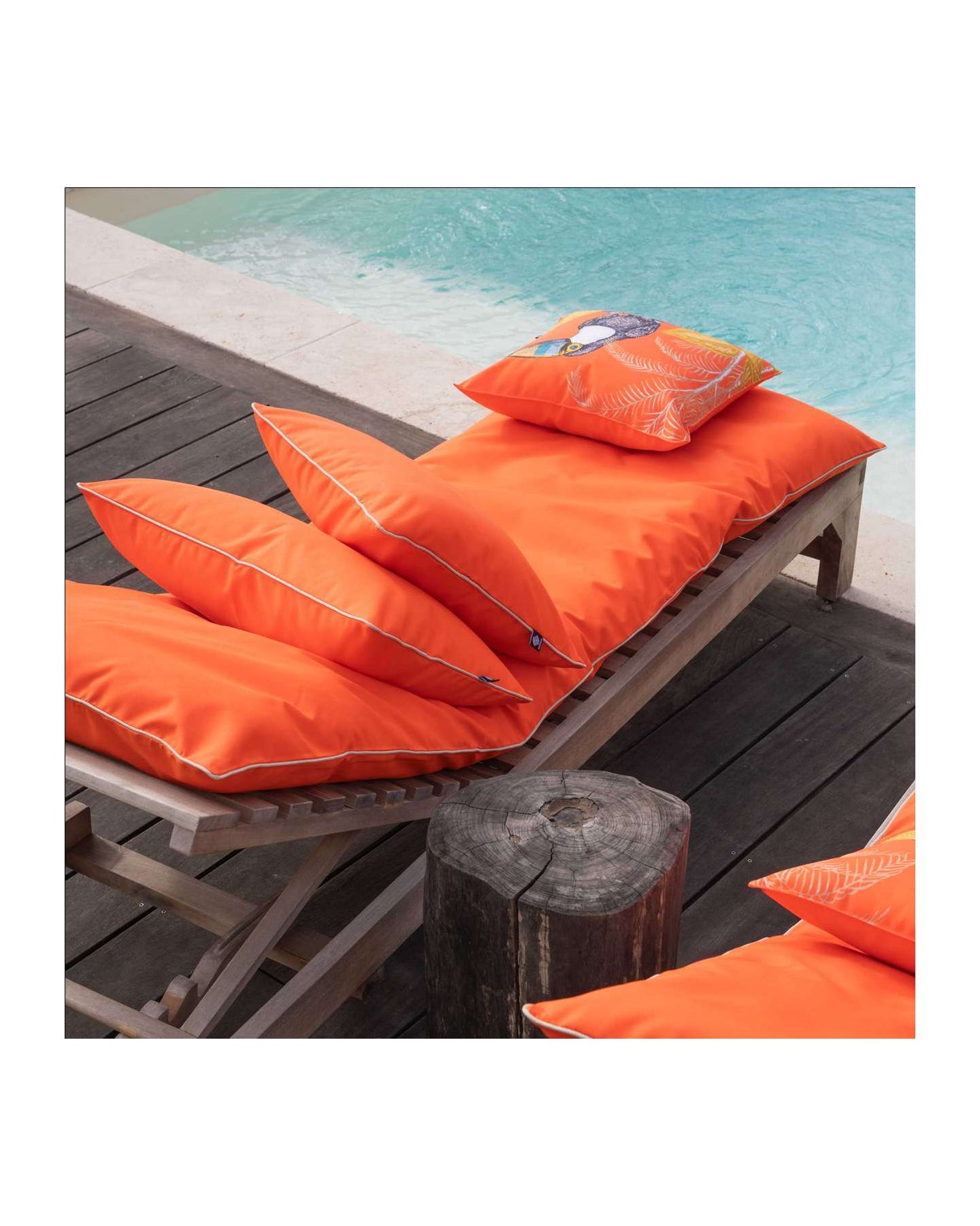Coussin d'extérieur rectangulaire en polyester uni pour passer un bon moment de détente confortablement installé au soleil. Parfaitement conçu grâce à un traitement anti UV 300h maximum et déperlant pour le bord de mer ou la piscine. Housse amovible et lavable à la machine. Afin de conserver ses couleurs, ne pas les laisser en permanence à l’extérieur.