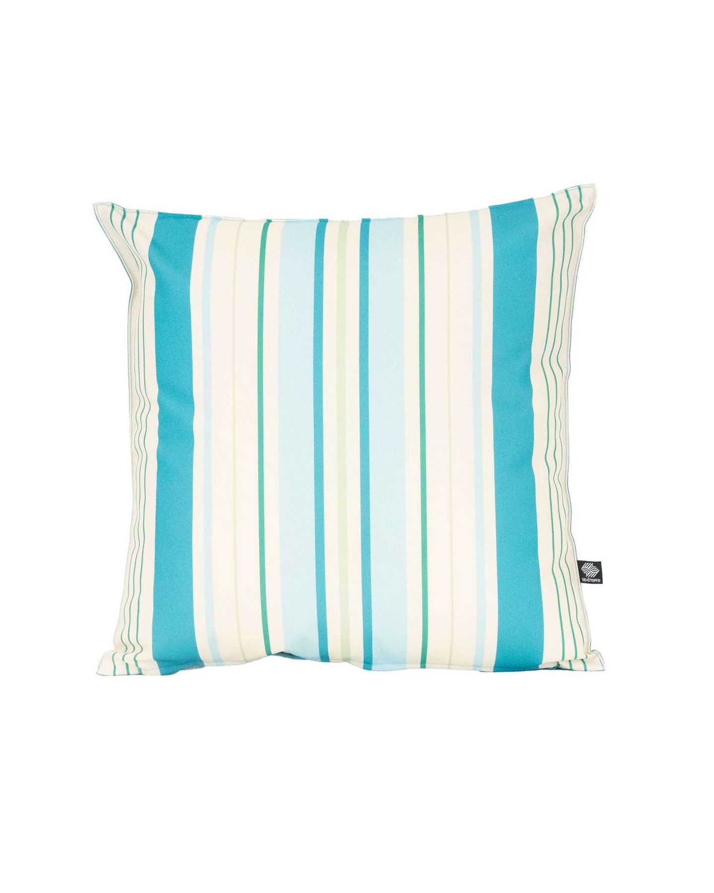 Coussin d'extérieur carré en polyester rayé pour passer un bon moment de détente confortablement installé au soleil. Parfaitement conçu grâce à un traitement anti UV 300h maximum et déperlant pour le bord de mer ou la piscine. Housse amovible et lavable à la machine. Afin de conserver ses couleurs, ne pas les laisser en permanence à l’extérieur.
