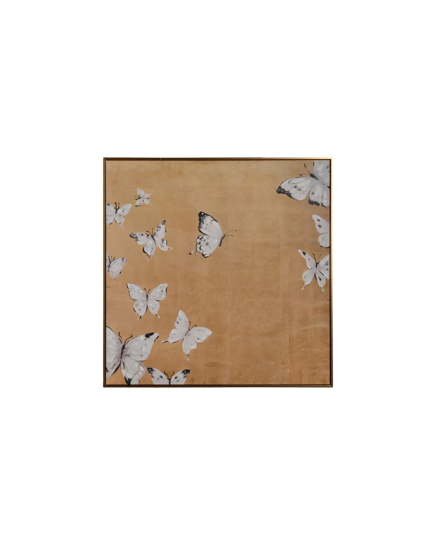 Toile naturelle encadrée dorée et décorée des jolis papillons peints à la main ne manquera pas de relever un mur clair avec ses teintes calmes et harmonieuses. Le tableau parfait pour sublimer votre décoration intérieure et laisser entrer la nature chez vous.