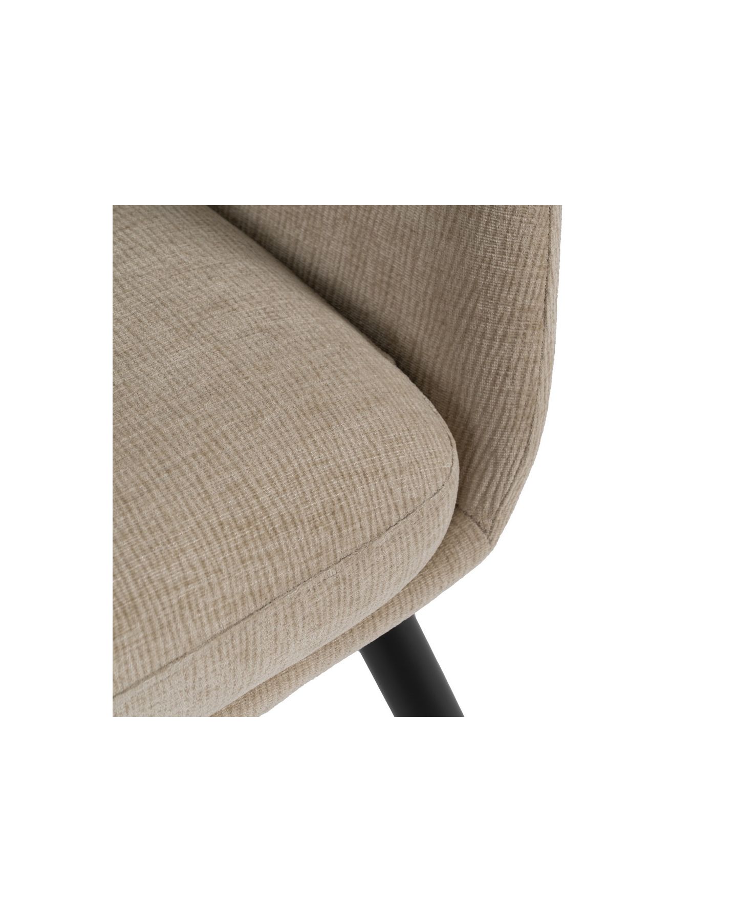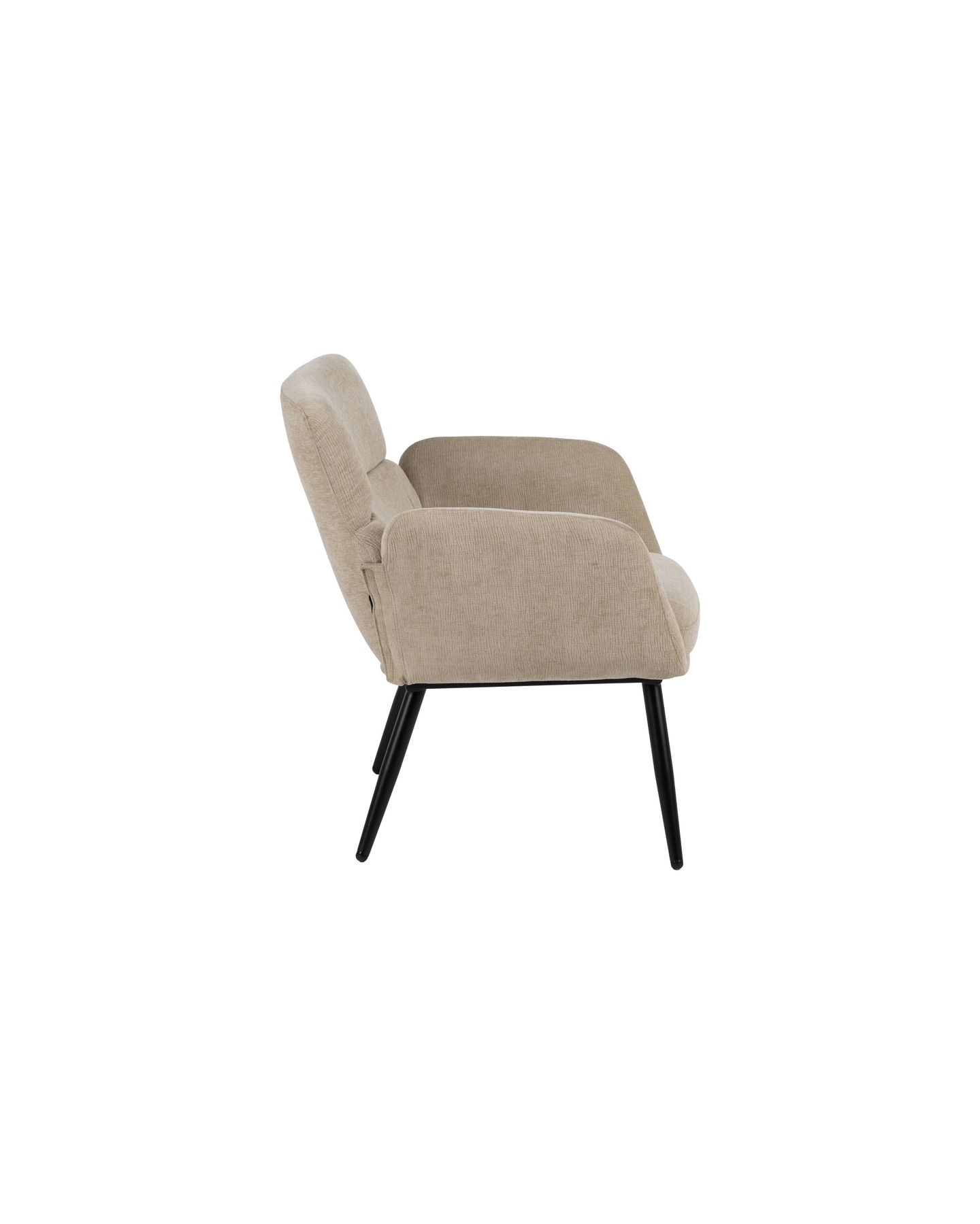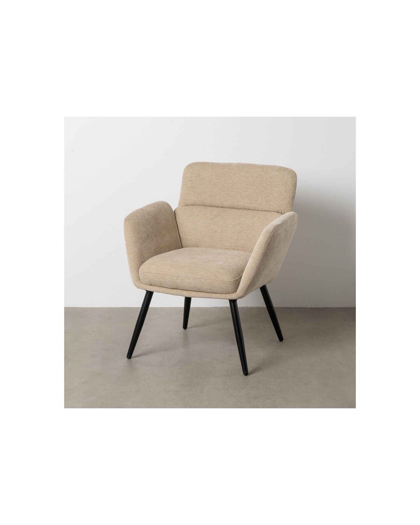 Fauteuil en tissu beige pour apporter une touche de couleur et un style contemporain à votre décor. Sa housse est douce au touché et l'assise confortable reposant sur des pieds en métal noir mat. Avec son design cosy, c'est un fauteuil avec beaucoup de charme !