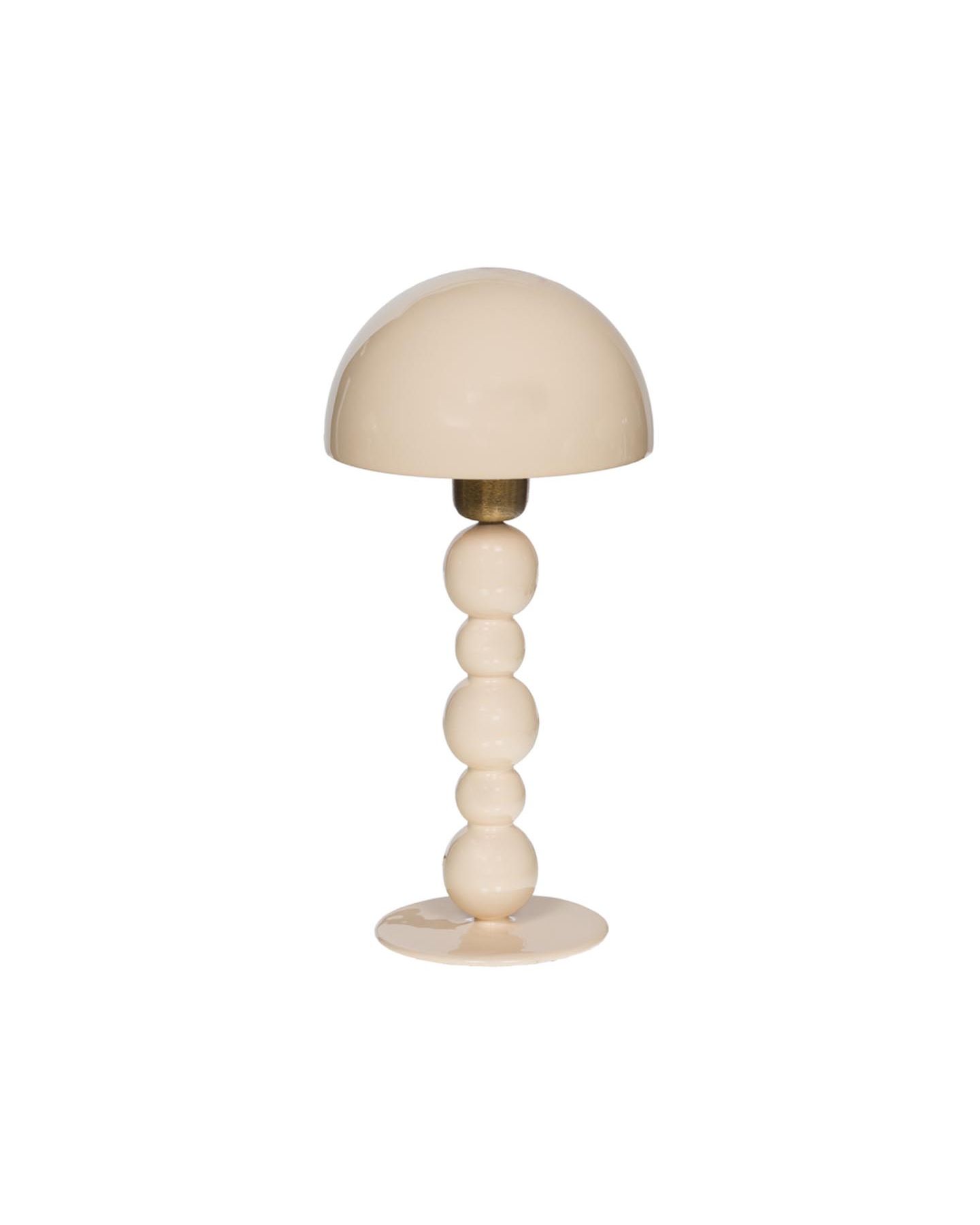 Lampe de table d'un style contemporain avec un abat-jour et pied rond formé des boules en métal beige et des finitions en métal doré. Avec son design épuré, cette lampe s'intègre harmonieusement sur une table d'appoint, une étagère ou même comme lampe de chevet. Ampoule disponible en magasin et dans la catégorie accessoire de luminaire.