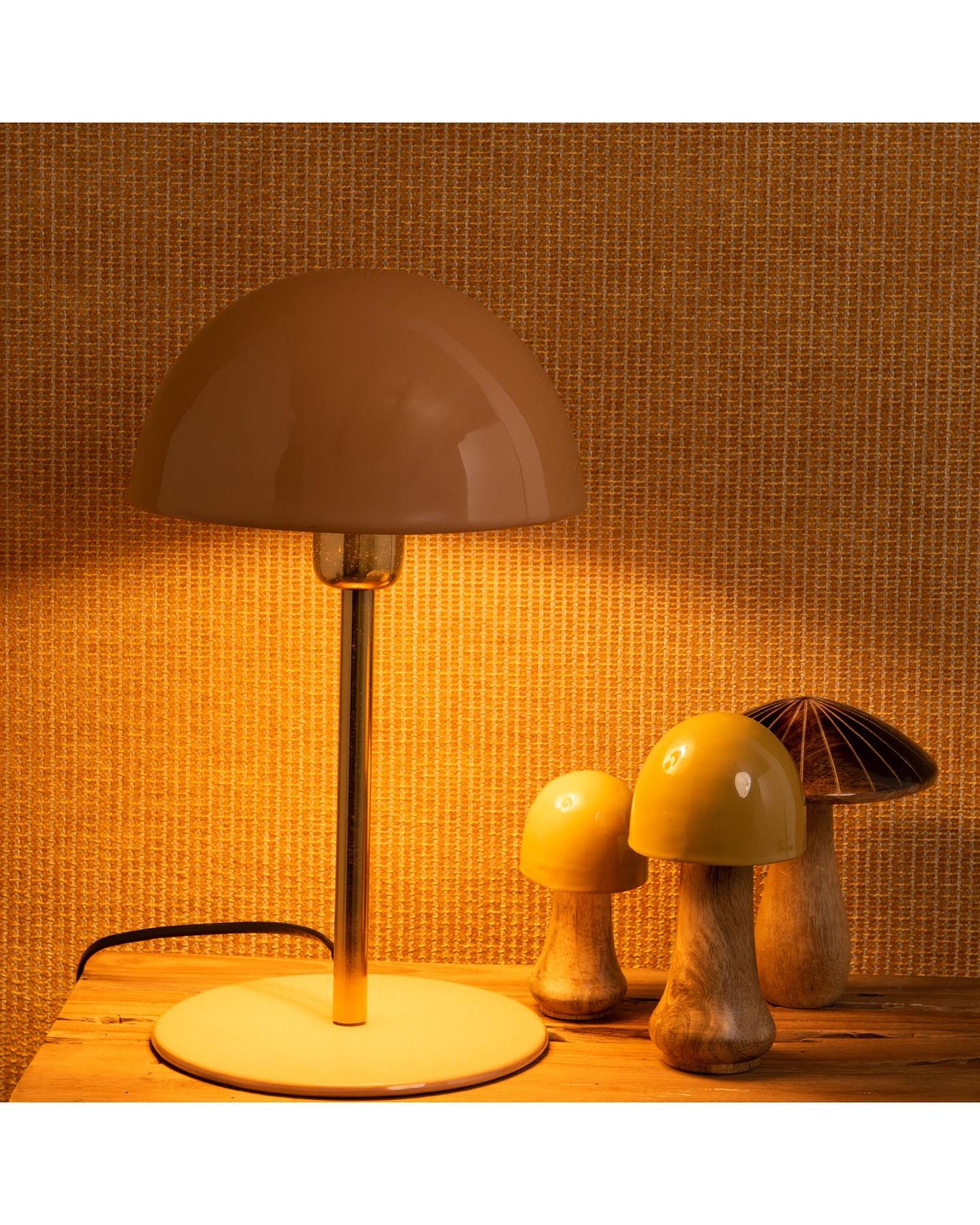 Lampe de table d'un style contemporain avec un abat-jour et pied rond en métal rose corail et des finitions en métal doré. Avec son design épuré, cette lampe s'intègre harmonieusement sur une table d'appoint, une étagère ou même comme lampe de chevet. Ampoule disponible en magasin et dans la catégorie accessoire de luminaire.
