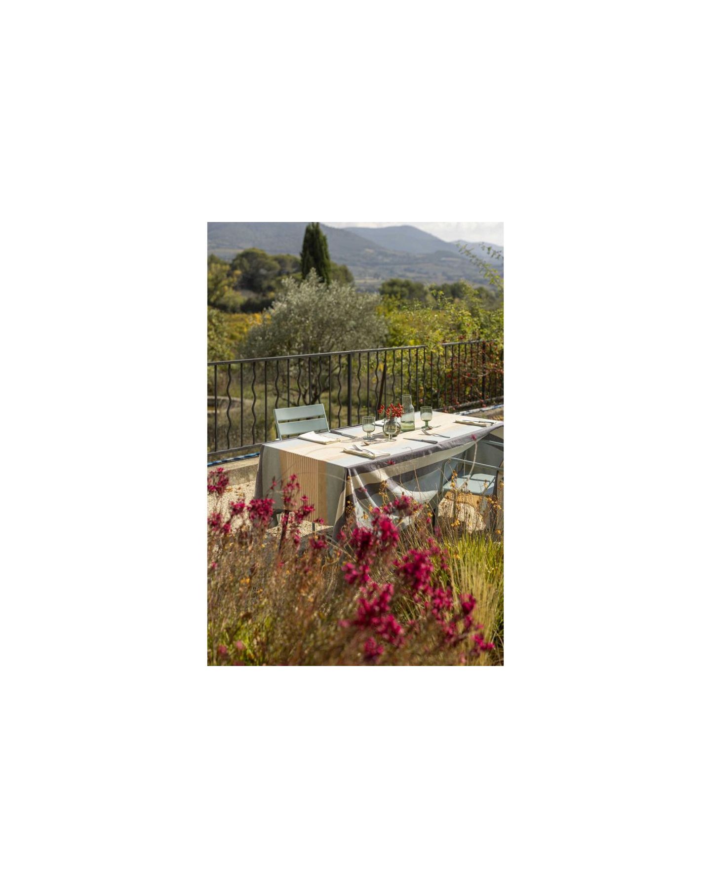 Apportez une touche de raffinement à vos repas avec cette jolie nappe rectangulaire en coton recyclé. Ses rayures délicates et son tissage soigné insufflent une ambiance à la fois chaleureuse et élégante, idéale pour toutes vos occasions, du quotidien aux moments festifs. Grâce à sa finition déperlante, elle se nettoie facilement d’un simple coup d’éponge tout en conservant un tombé souple et naturel.