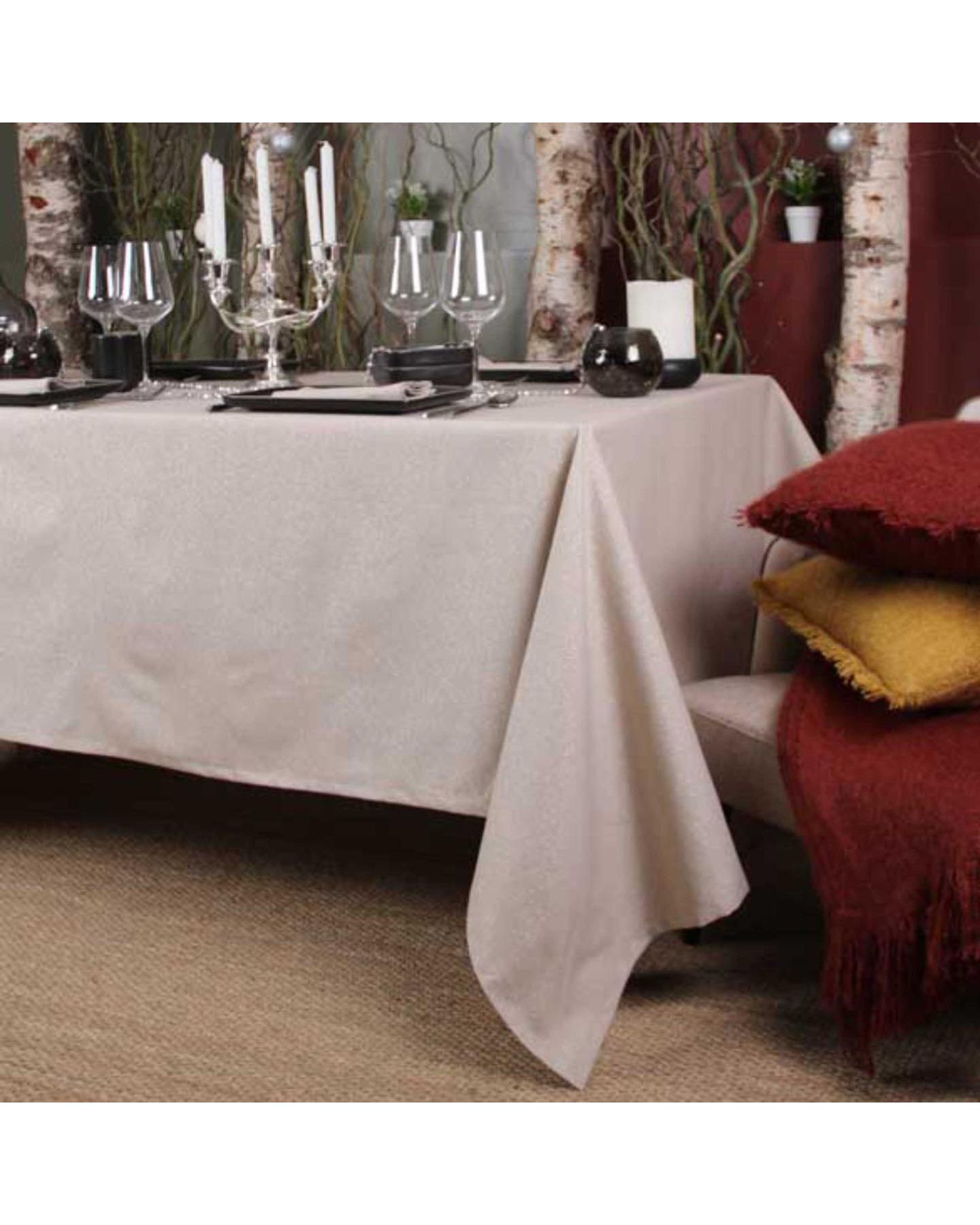 Cette nappe de table très simple mais élégante avec juste un fil doré et ses paillettes en fils de lurex sera parfaite pour vos tables de Noël, jour de l'An ou autres car vous pourrez l'agrémenter comme bon vous semble.
