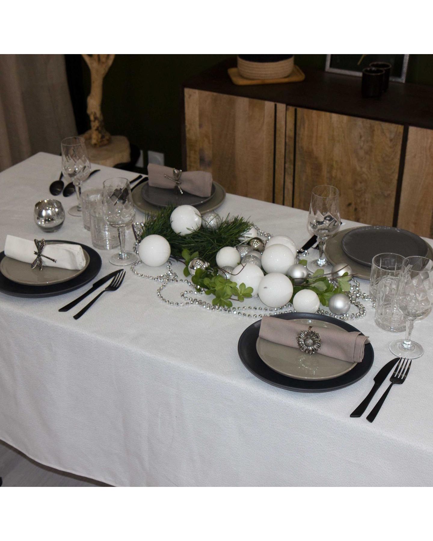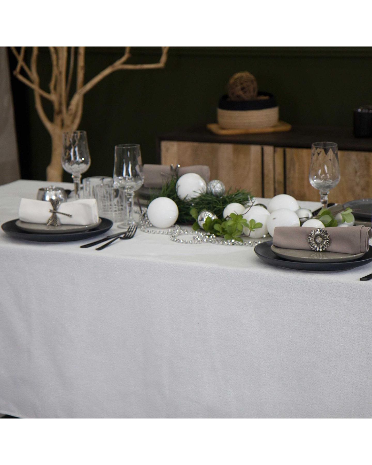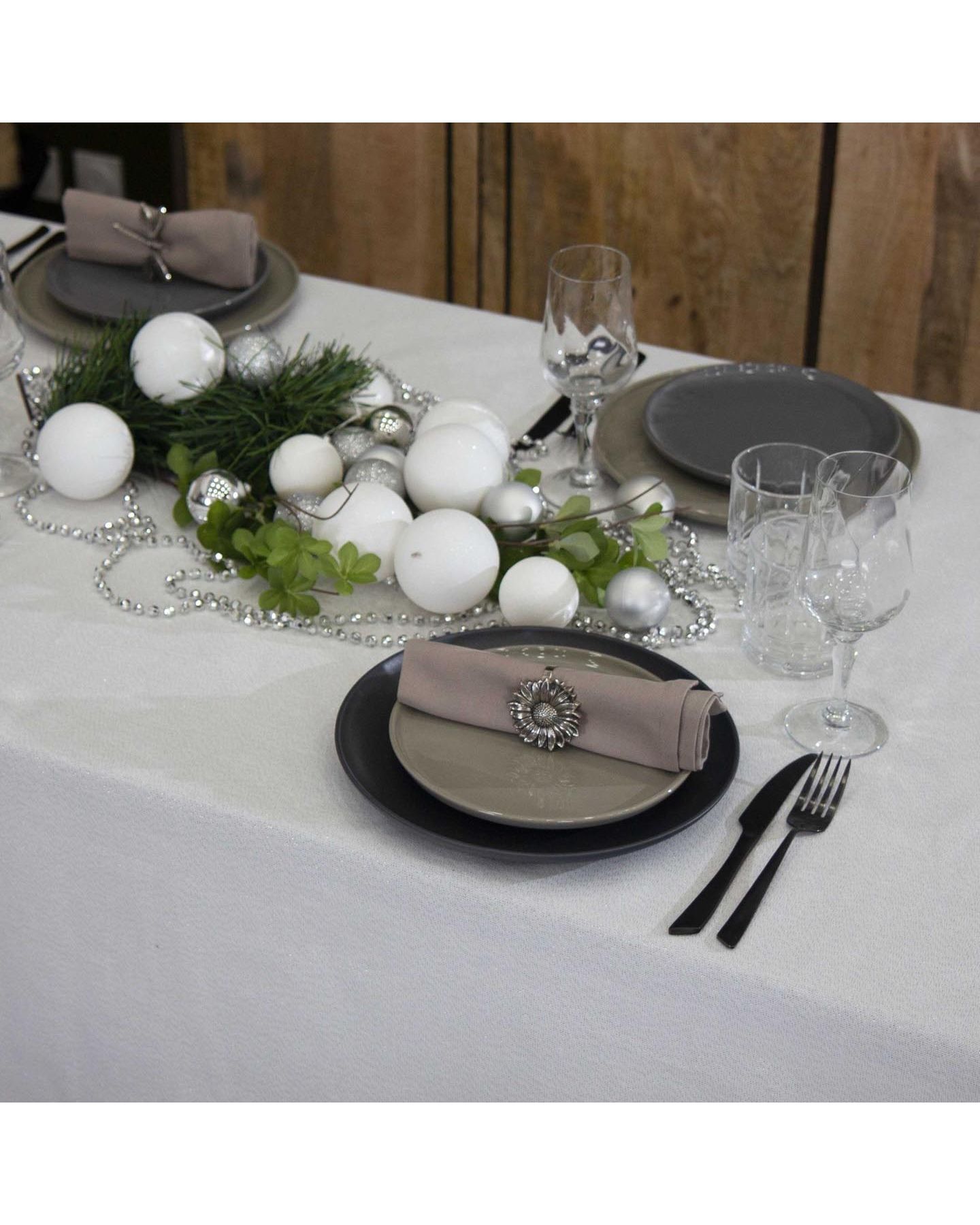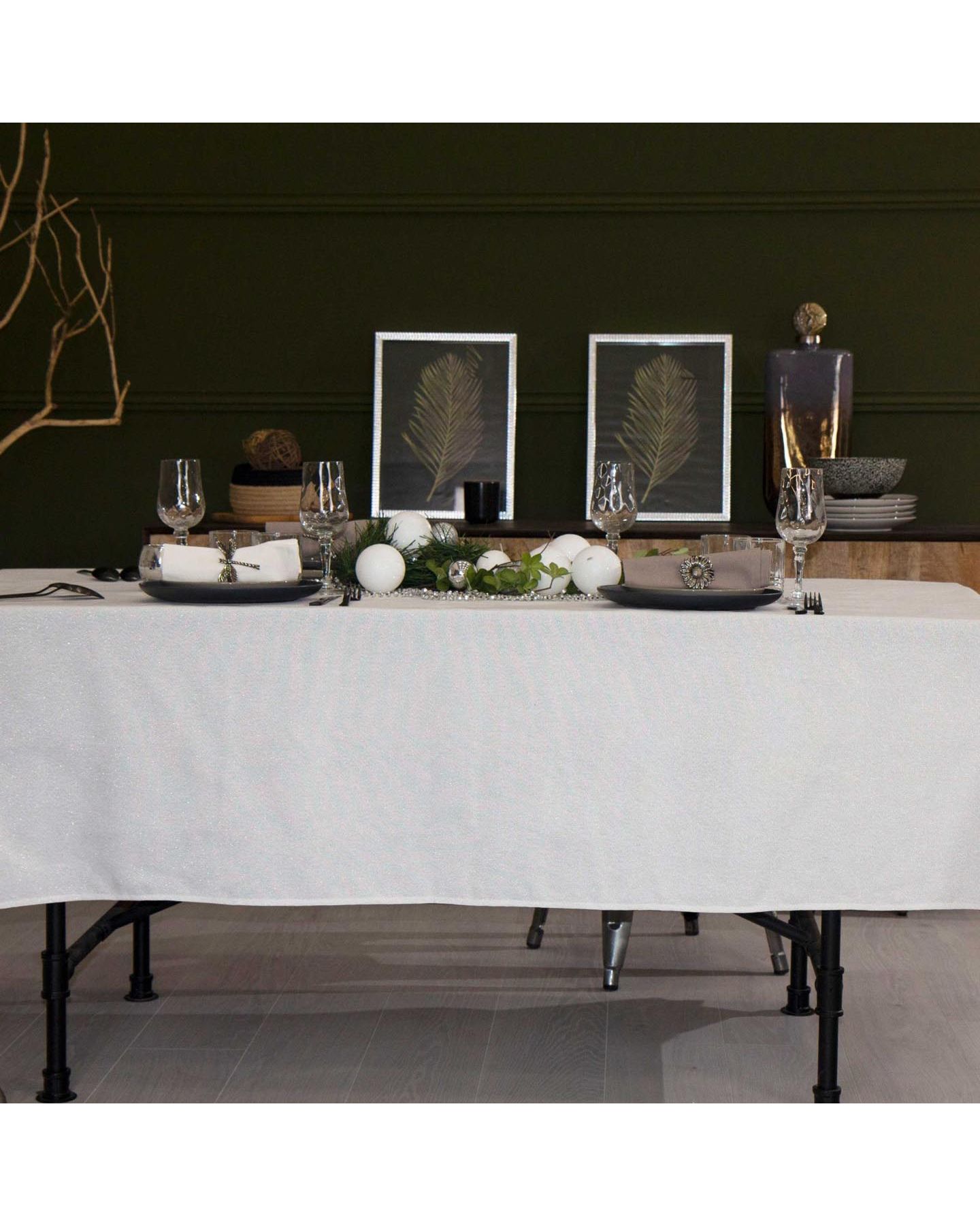 Cette nappe de table très simple mais élégante avec juste un fil argenté et ses paillettes en fils de lurex sera parfaite pour vos tables de Noël, jour de l'An ou autres car vous pourrez l'agrémenter comme bon vous semble.