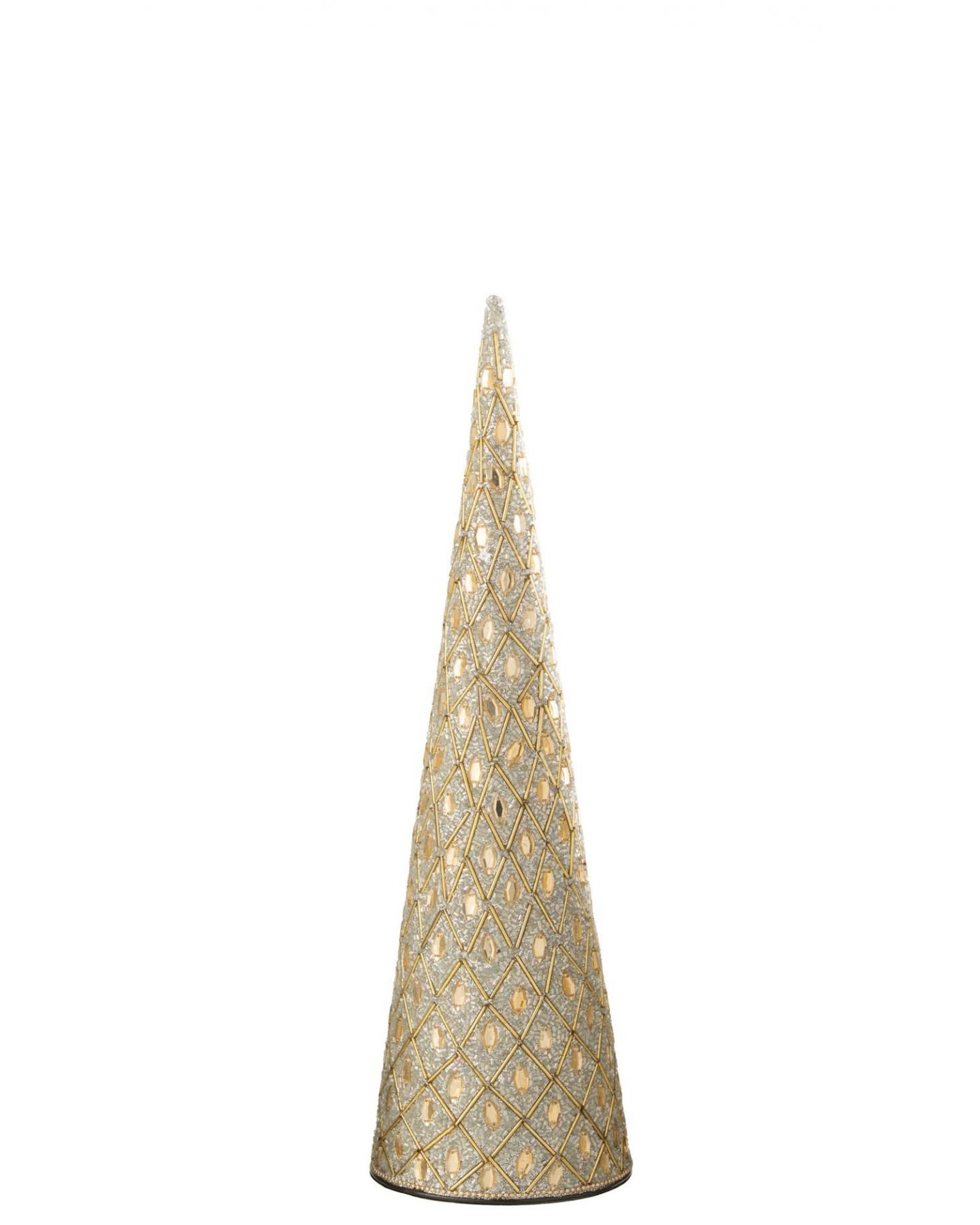 Cône Fer/Perles Blanc/Dor Taille M ,12x12x38cm