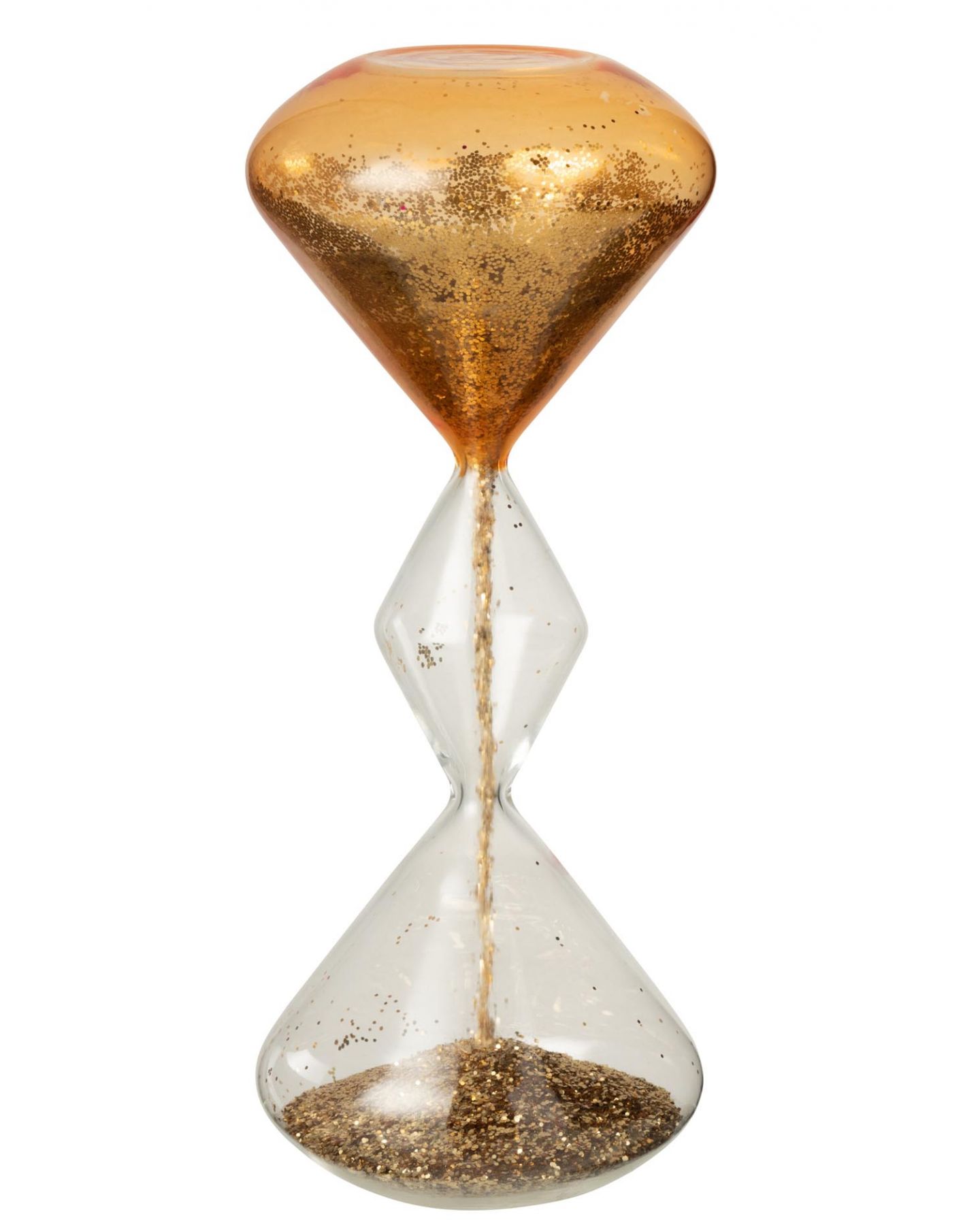 Grand sablier en verre garni des paillettes dorées, ornement original pour mettre tous vos meubles en valeur.