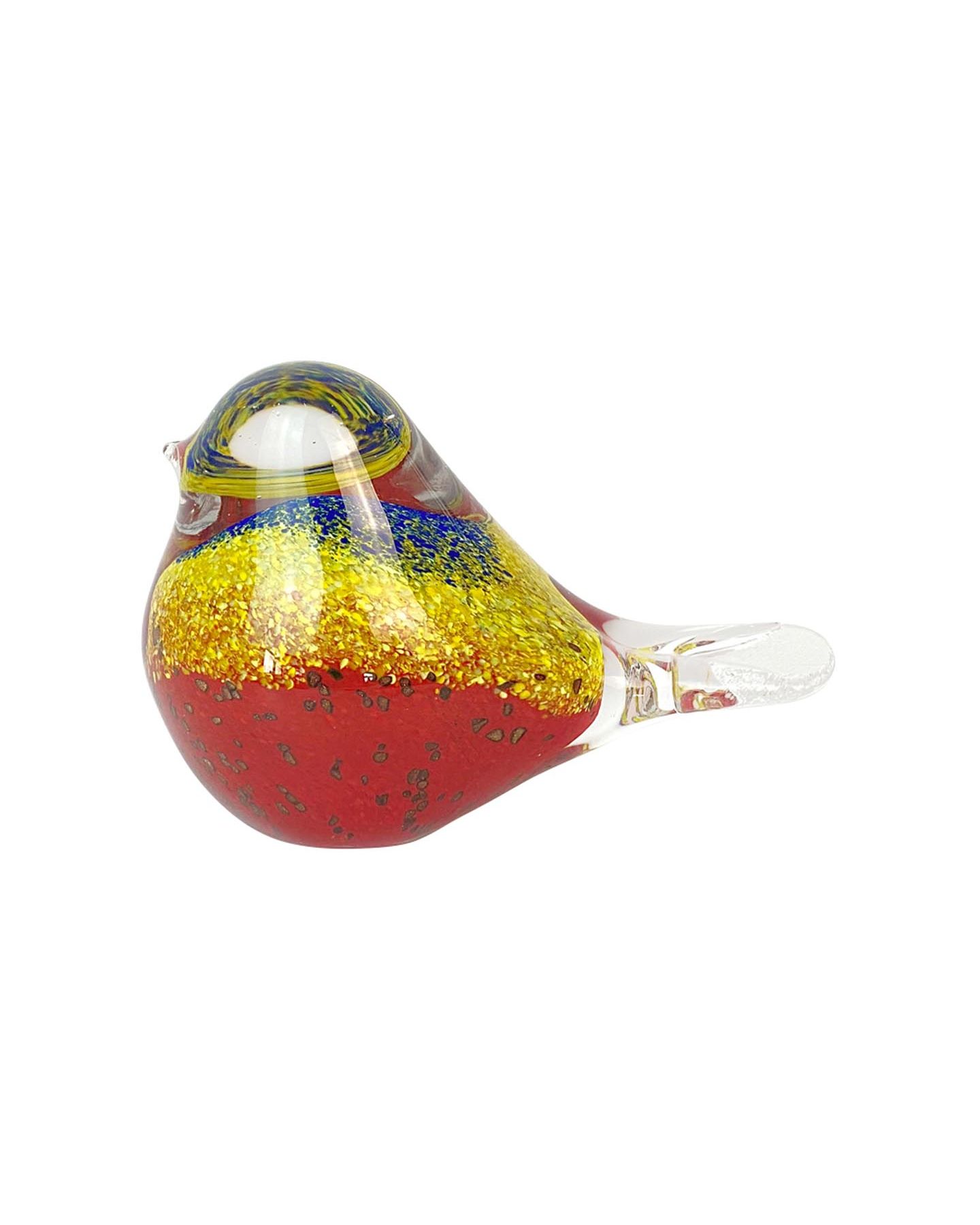 Oiseau décoratif en verre sulfure or orné des taches colorées mouchetées, ornement magnifique et original pour mettre tous vos meubles en valeur.