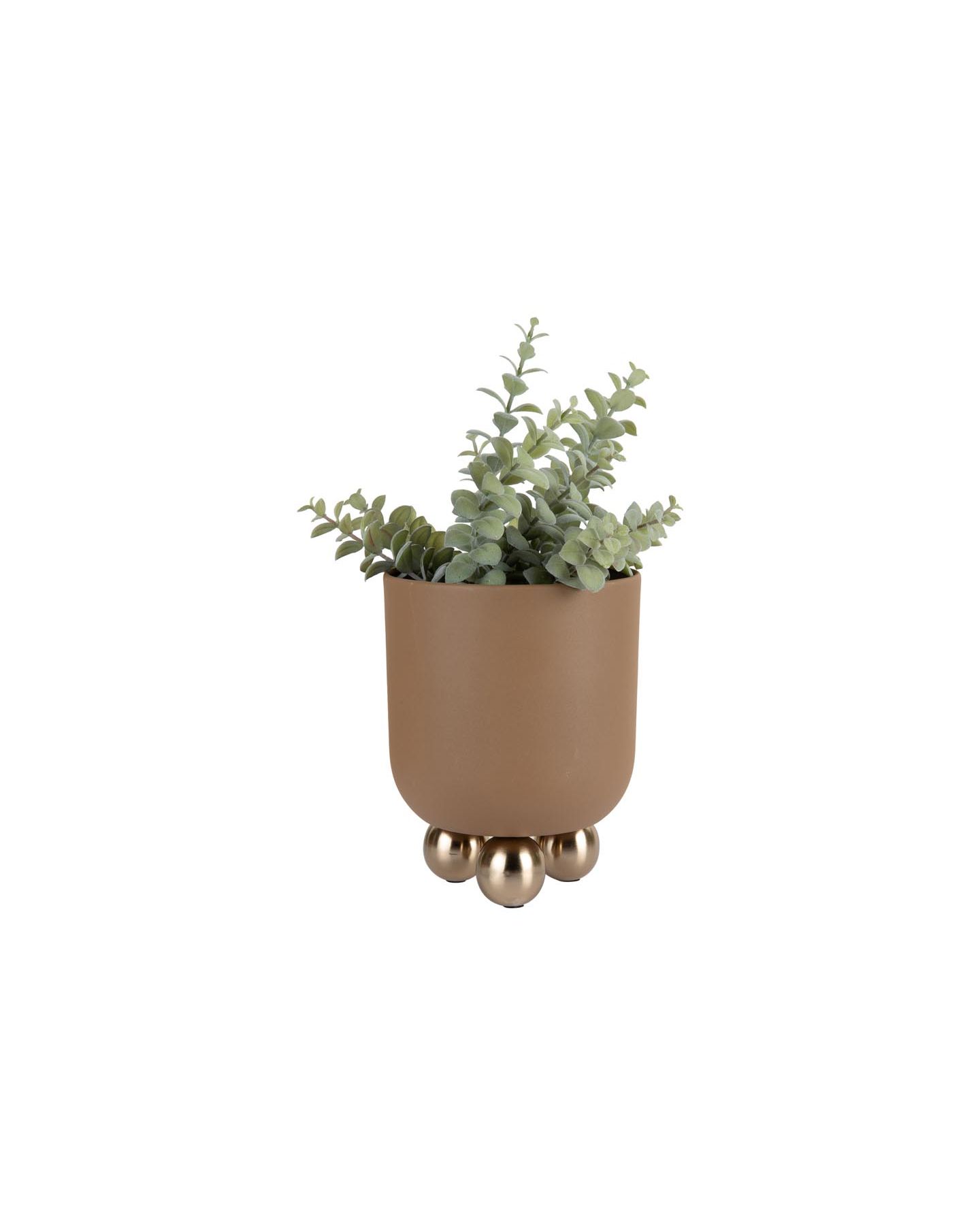 Vase / cache-pot en métal mocha sur une base formée de 3 boules dorées pour un look très original. Pour mettre en valeur une plante ou à disposer comme simple objet de décoration.