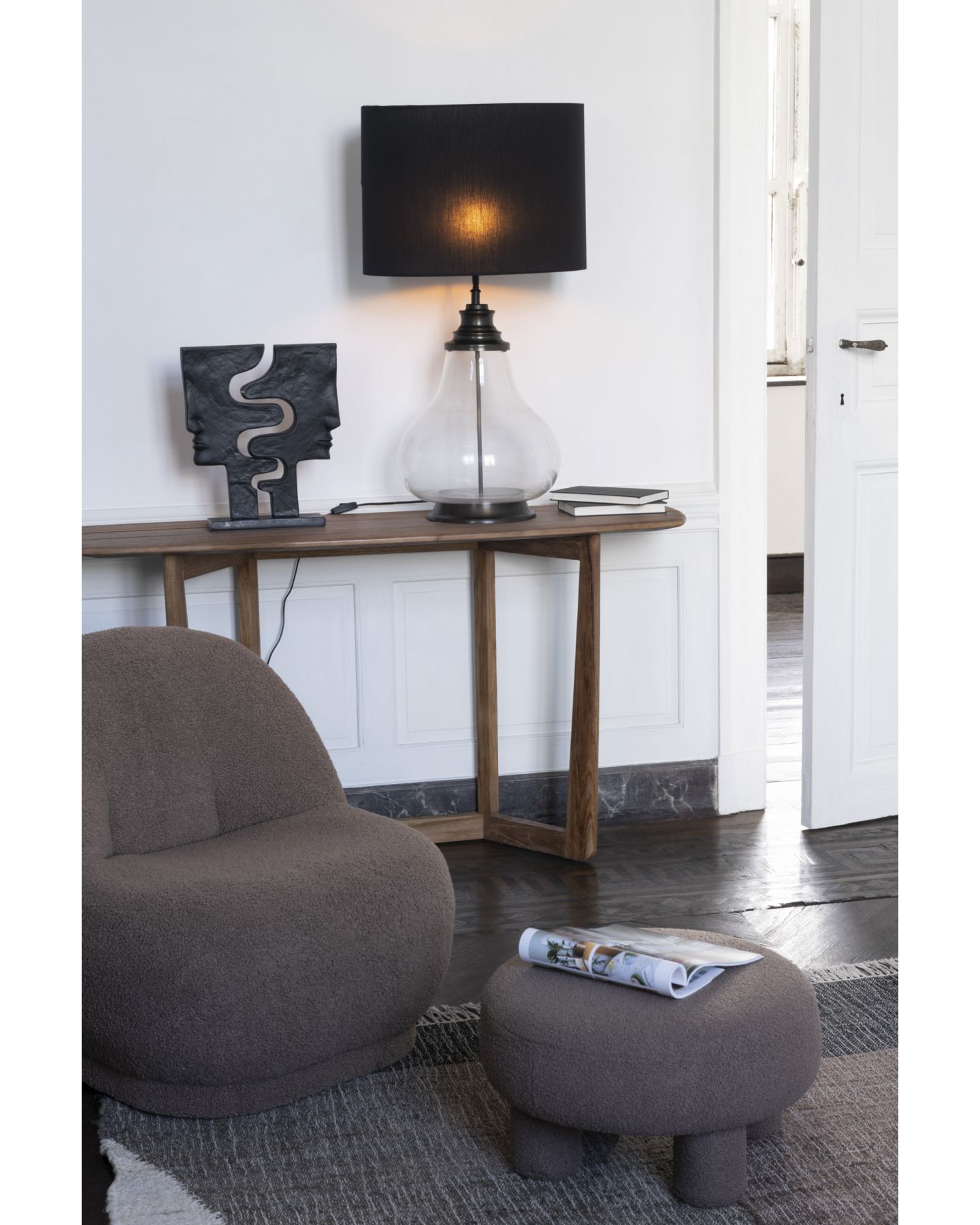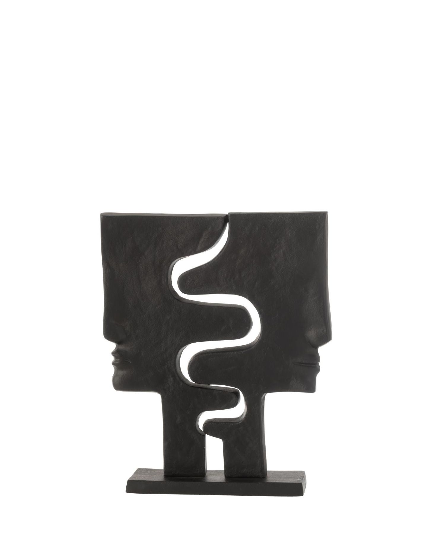 Ornement sur pied composé de deux visages imbriqués d'un style contemporain et élégant en aluminium noir pour mettre en valeur tous vos meubles. Le cadeau idéal !