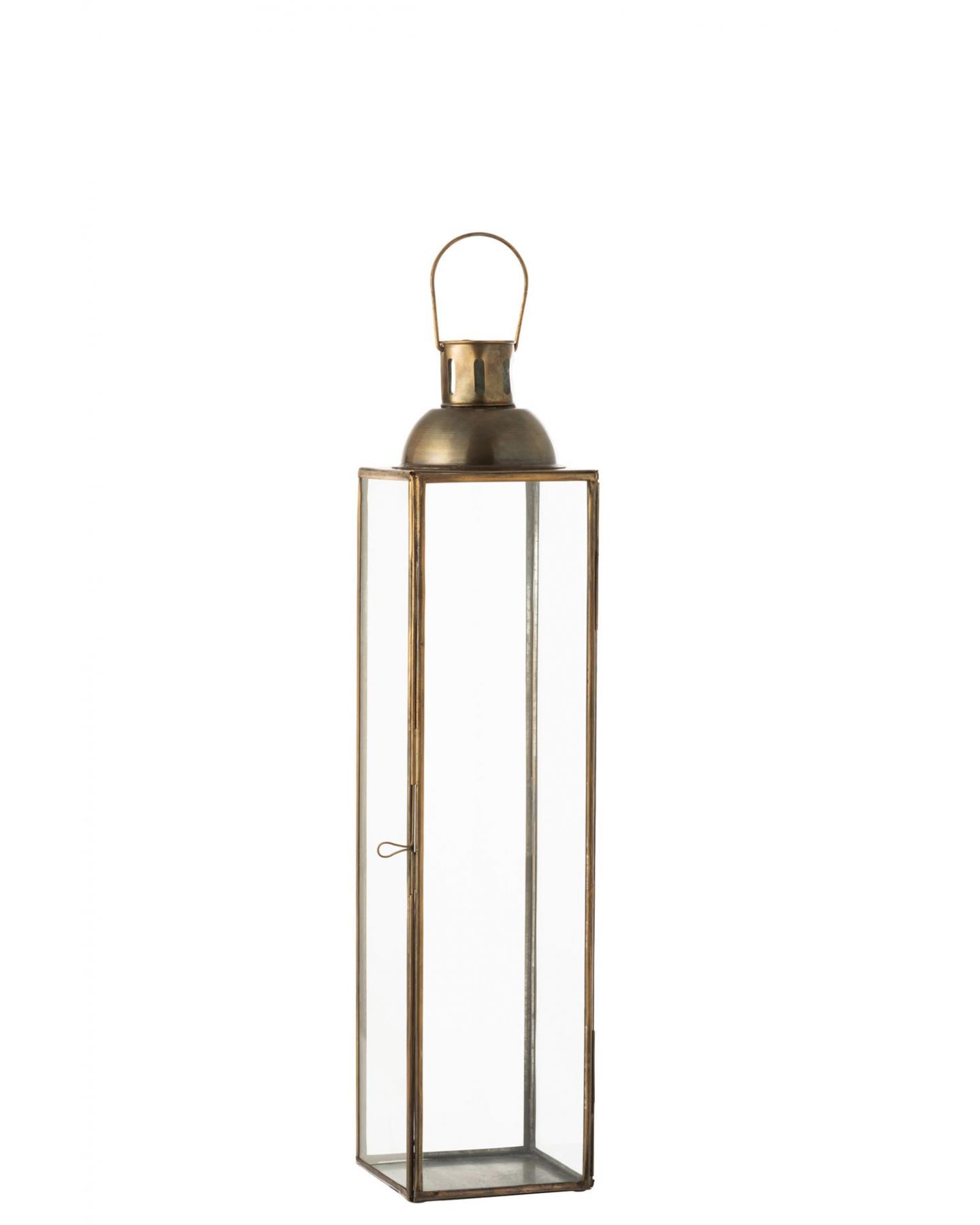 Lanterne Carree Antique Haute Verre/Metal Bronze Small ,14x14x69cm
