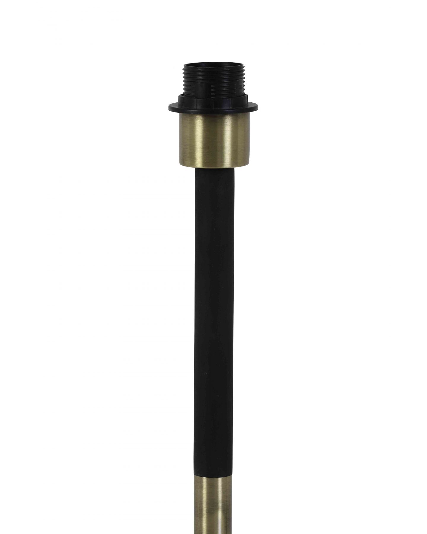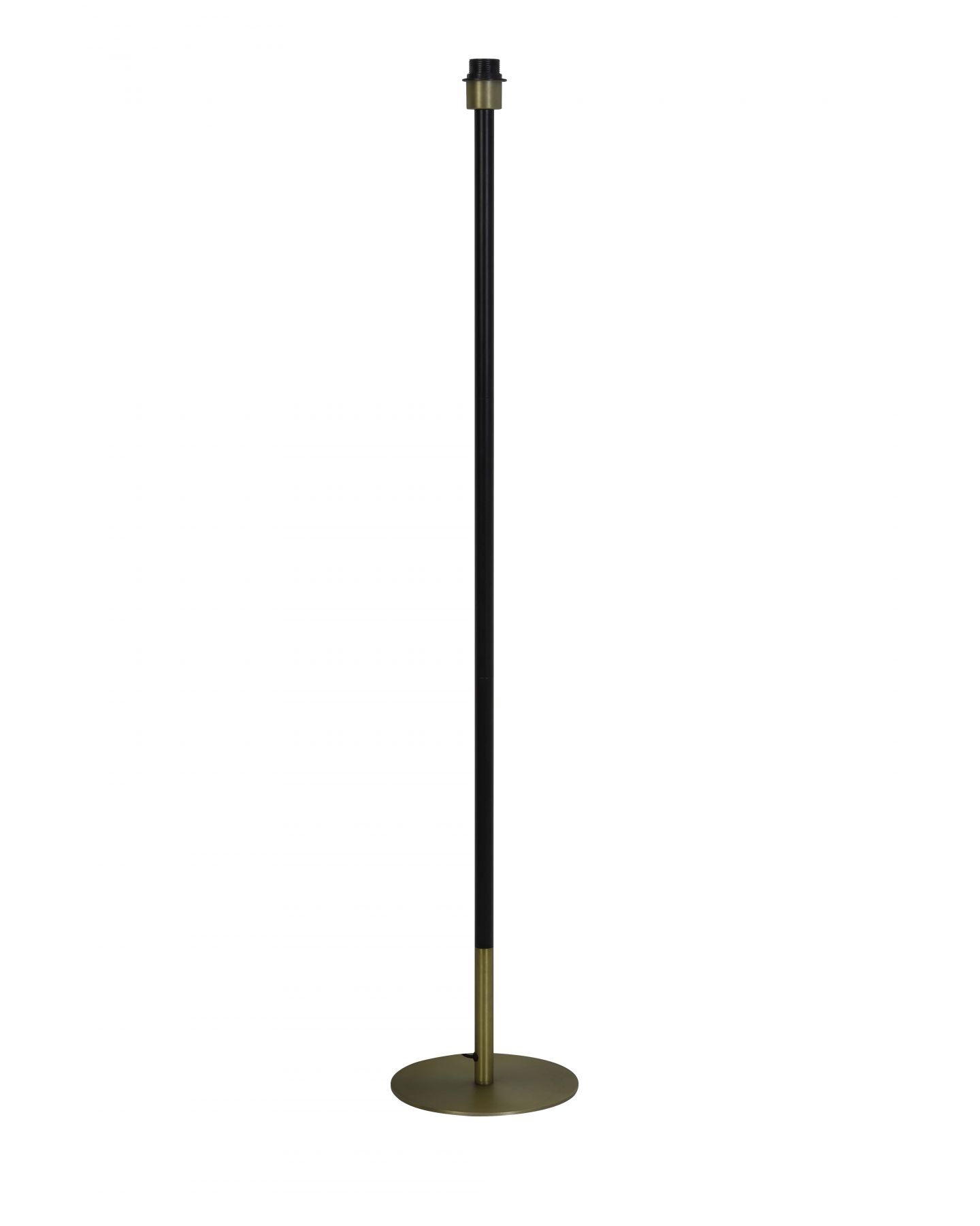 Pied de lampadaire en métal noir mat avec des détails en bronze antique. Embout et cordon noir. Abat-jour et ampoule disponible en magasin et dans la catégorie accessoire de luminaire.