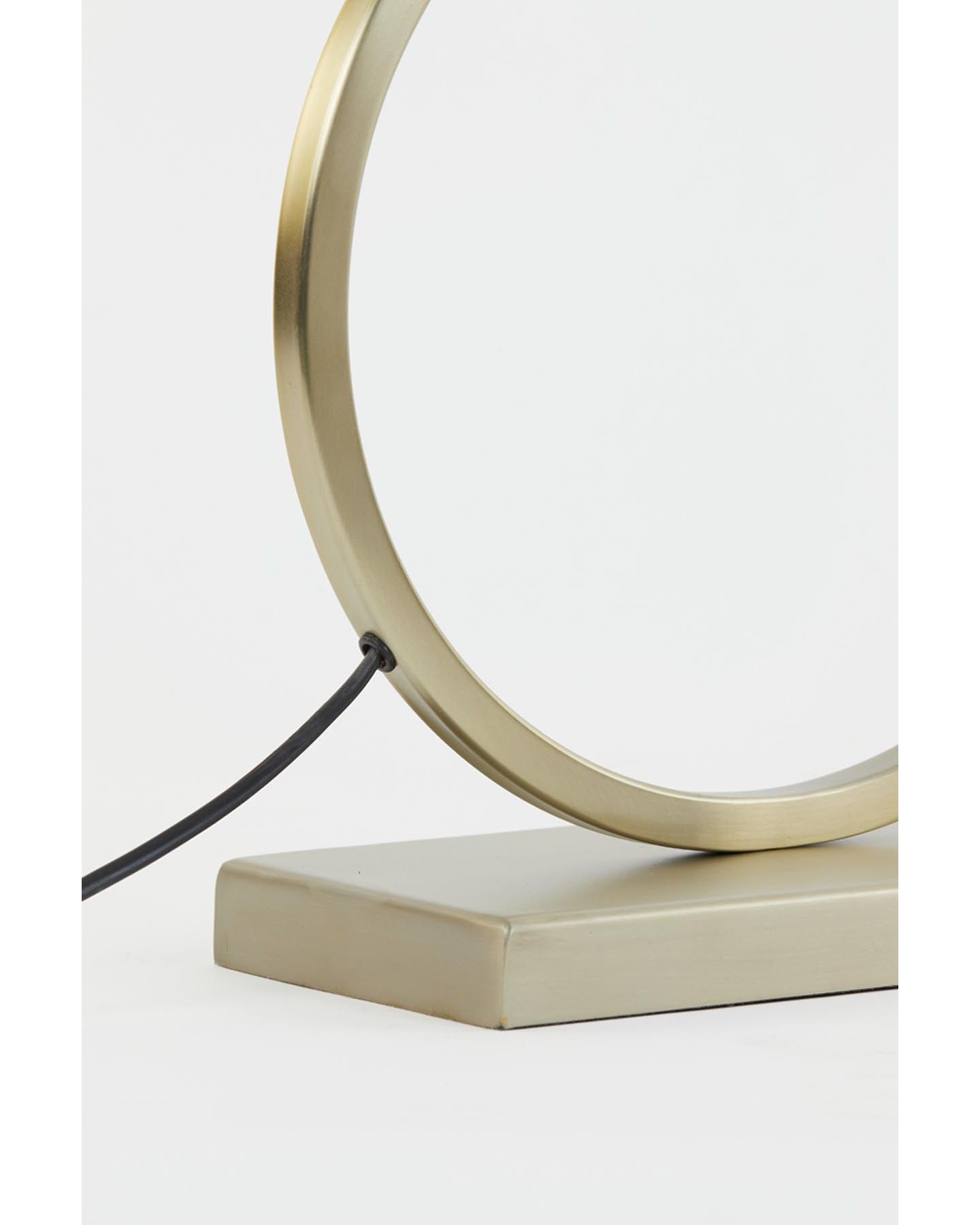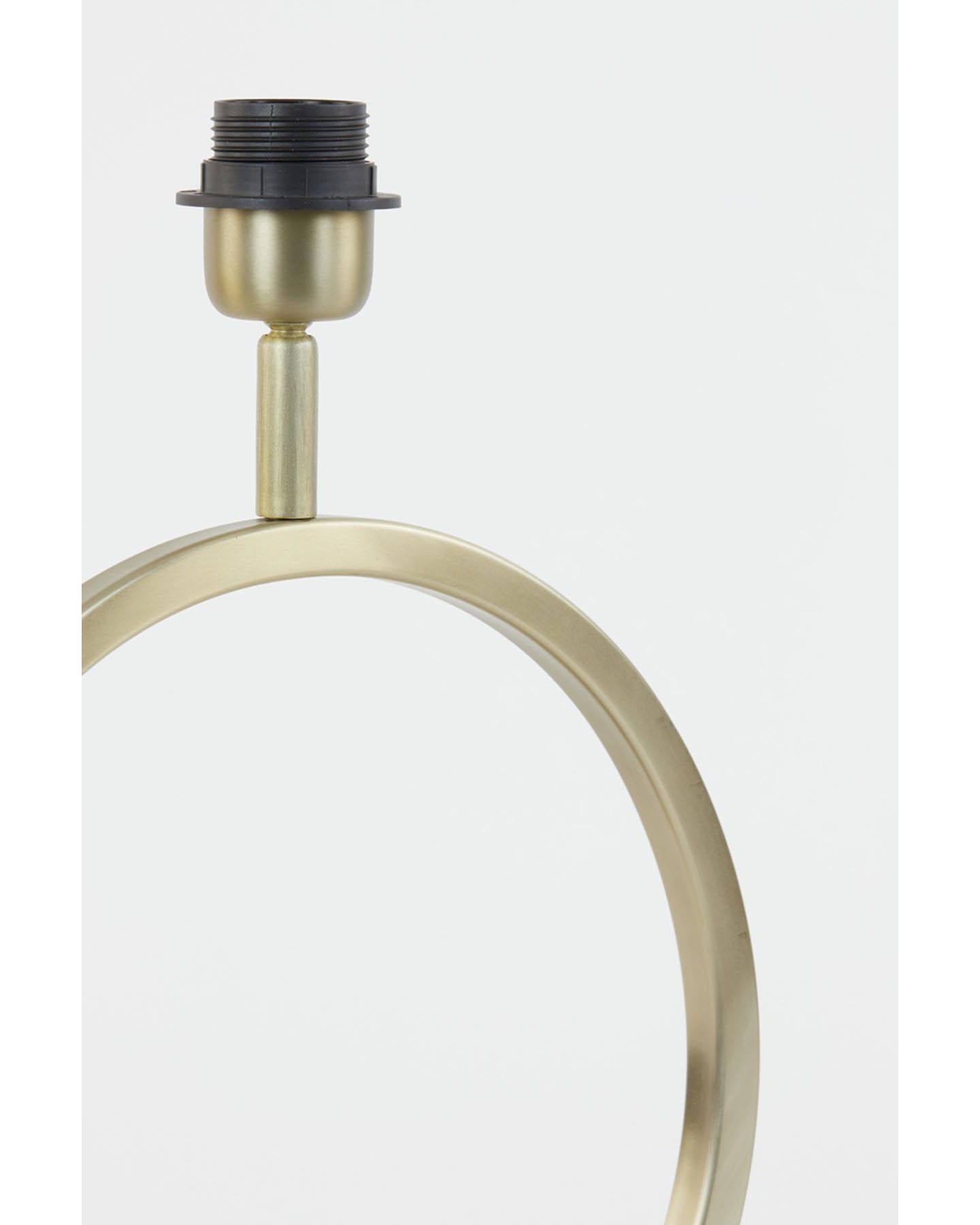 Pied de lampe arrondi en métal doré d'un style chic et contemporain. Embout doré et cordon noir. Abat-jour et ampoule disponible en magasin et dans la catégorie accessoire de luminaire.