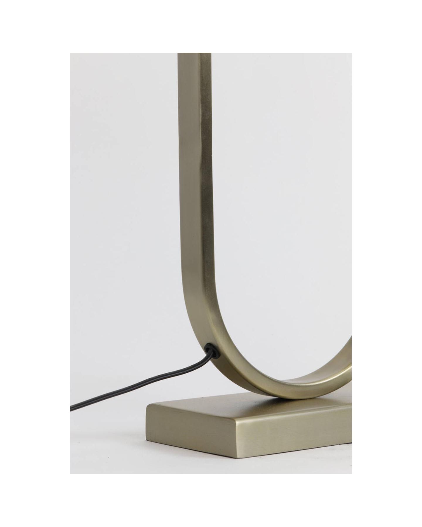 Pied de lampe en métal doré d'un style épuré et contemporain. Embout en laiton et cordon noir. Abat-jour et ampoule disponible en magasin et dans la catégorie accessoire de luminaire.