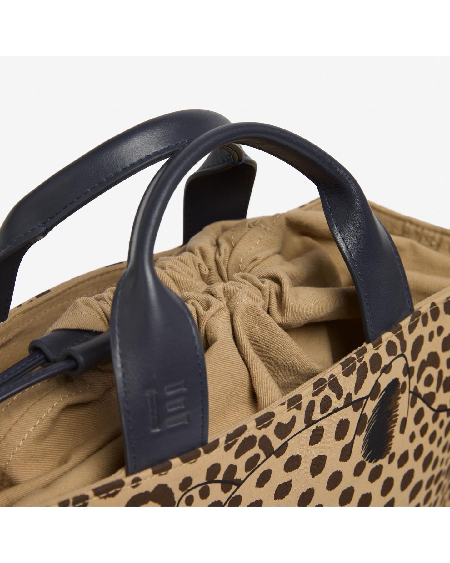 Ajoutez des couleurs à votre tenue avec ce sac en toile de coton imprimé aux motifs léopards. Plusieurs façons de le porter, avec la sangle en cuir comme bandoulière ou en retirant la sangle pour le porter à la main. Votre compagnon idéal de tous les jours, il peut contenir votre téléphone, vos lunettes de soleil, vos clés, votre porte-monnaie et ce livre que vous ne pouvez arrêter de lire. Ce sac chic et pratique est orné d'une sangle en cuir ajustable, des anses et finitions en cuir et une pochette interne. Fabriqué en Inde.