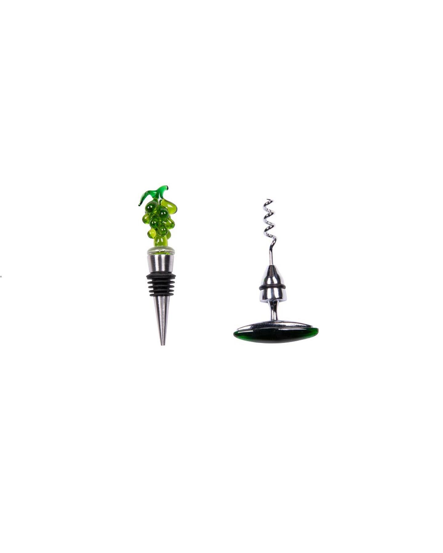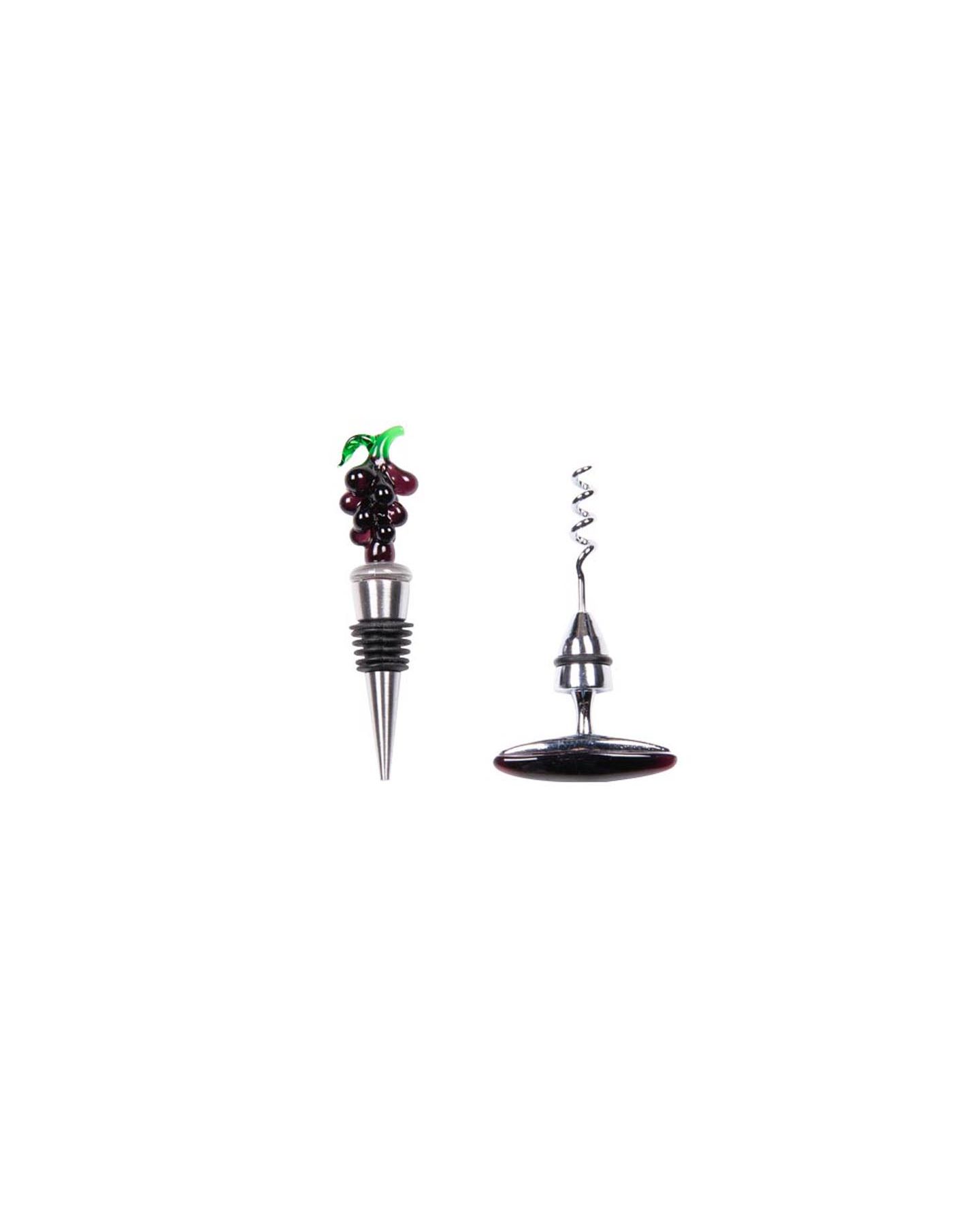 Set élégant de 2 accessoires pour le vin : un bouchon en inox surmonté d’une grappe de raisin en verre et un tire-bouchon assorti, parfait pour sublimer vos moments œnologiques. Disponible en 4 coloris raffinés pour allier style et fonctionnalité à votre table. Coloris au choix dans la limite des stocks disponibles.