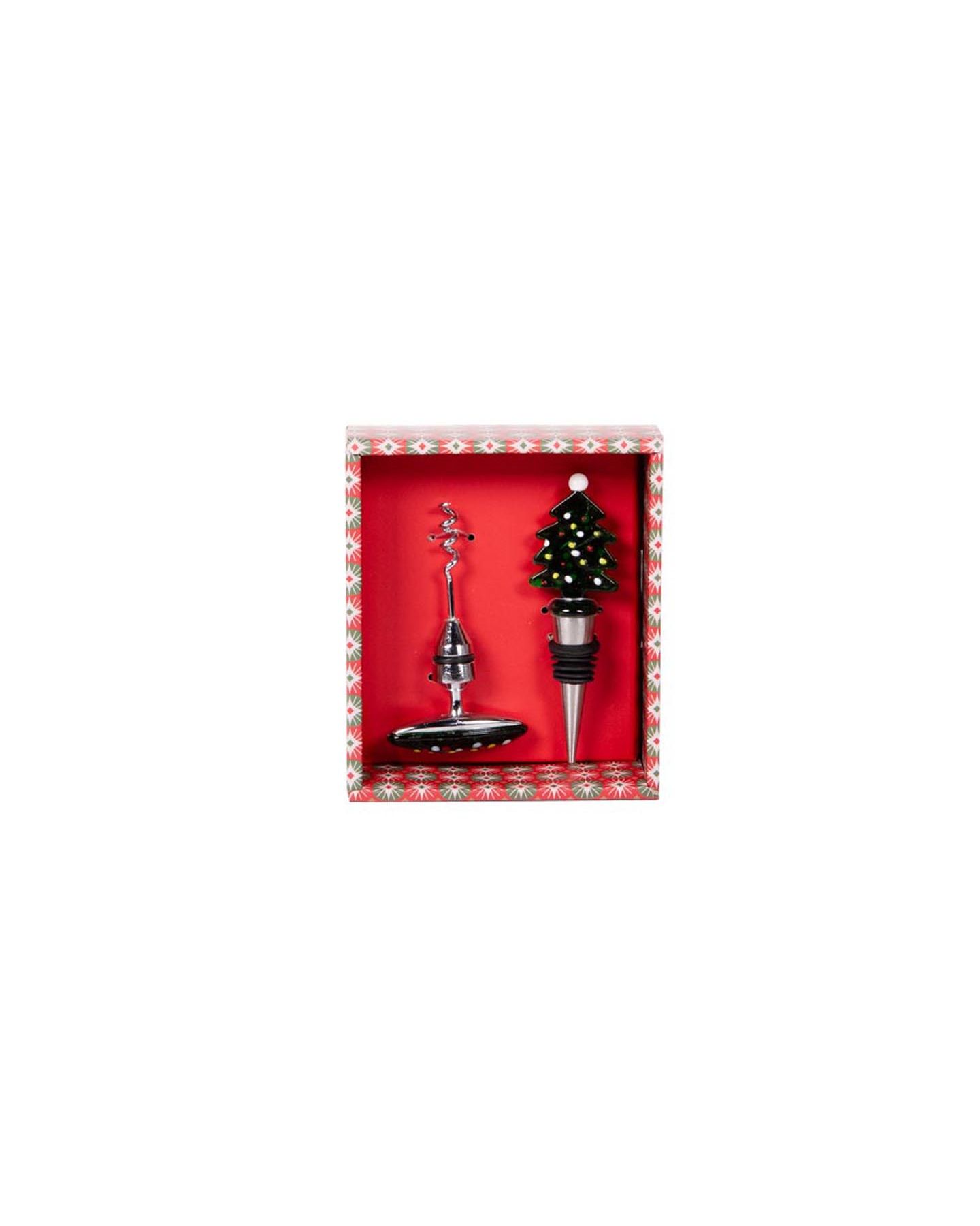 Coffret élégant de 2 accessoires pour le vin : un bouchon de bouteille en inox décoré d'un motif de Noël et un tire-bouchon assorti, parfait pour sublimer vos moments œnologiques pendant les fêtes de fin d'année. Pratiques et festifs, ces accessoires sont idéals pour déboucher et conserver vos bouteilles tout en apportant une ambiance joyeuse à vos repas. Parfait également comme idée cadeau originale et conviviale pour les amateurs de vin. Motifs au choix dans la limite des stocks disponibles.
