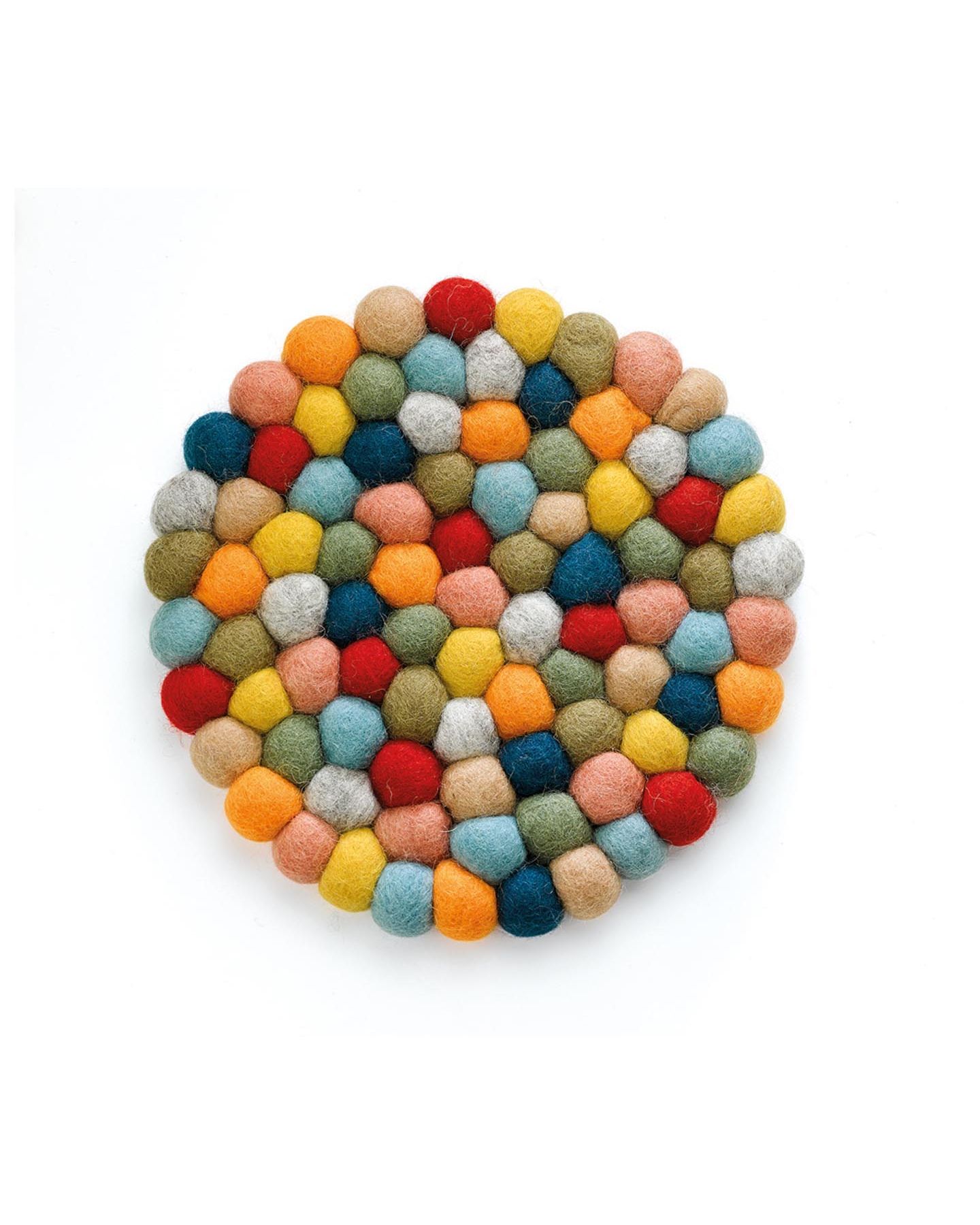 Dessous de plat rond pour protéger vos surfaces. Fabriqué à la main au Népal dans le respect des principes du commerce équitable, il est composé de boules de feutre en laine de mouton, un matériau naturellement résistant à la chaleur et durable. Ce dessous de plat protège efficacement vos tables des rayures et de la chaleur, tout en ajoutant une touche décorative. Facile à entretenir, il est lavable avec une éponge à l'eau claire légèrement savonneuse, alliant ainsi fonctionnalité et éthique.