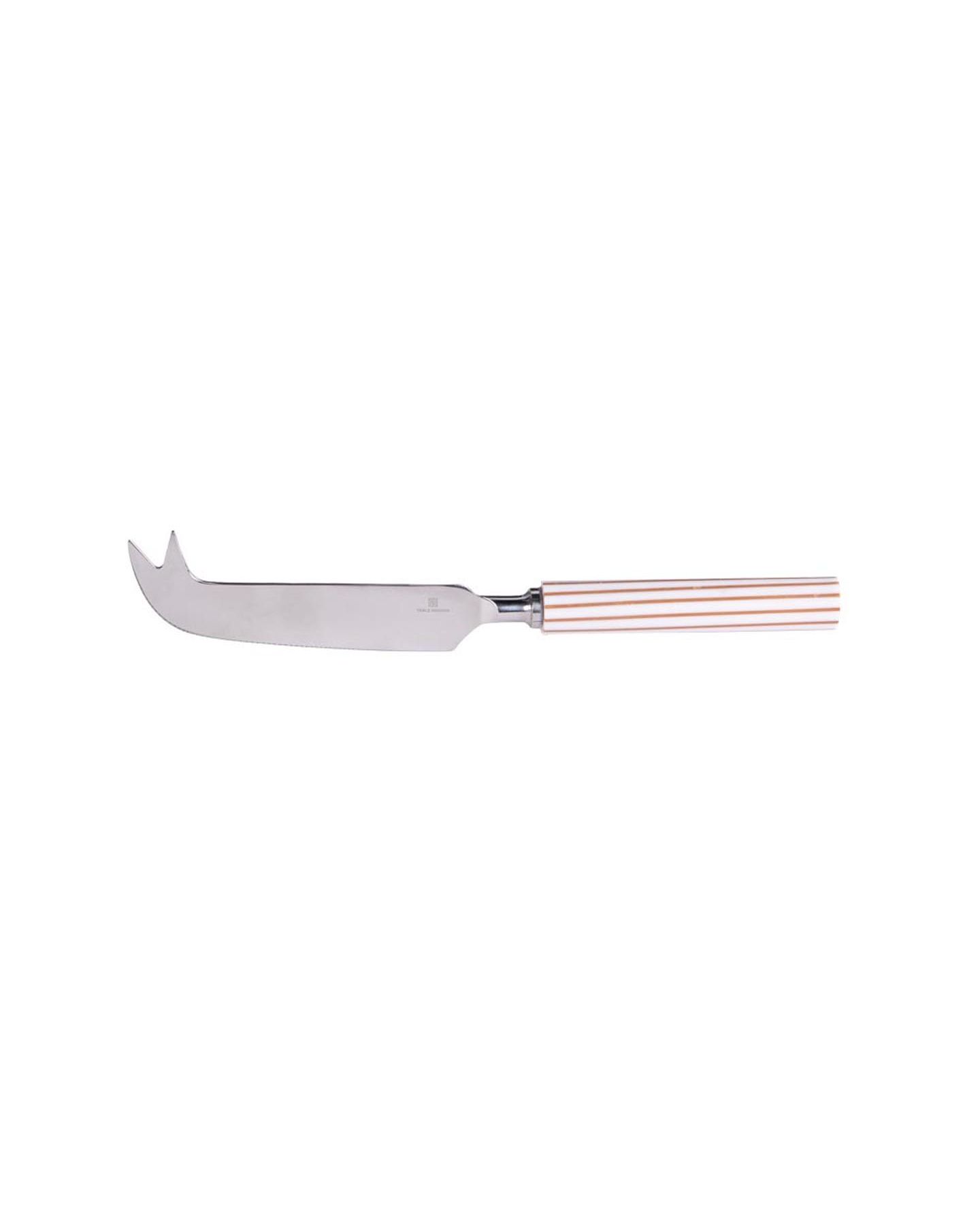 Couteau à fromage en acier inoxydable de qualité supérieure doté d'un manche orné des motifs géométriques et contemporains. Avec sa lame élégante et tranchante de 12 cm de longueur dotée d'une fourchette intégrée et sa forme élancée et élégante, ce couteau est parfait pour couper tous types de fromages avec une grande précision. Le choix parfait pour les dégustations de fromage ou les plateaux de fromage. Dessin au choix dans la limite des stocks disponibles.