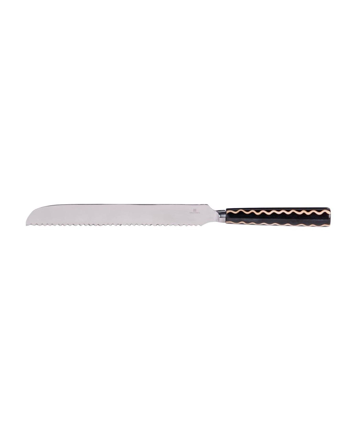 Couteau à pain en acier inoxydable de qualité supérieure doté d'un manche orné des motifs géométriques et contemporains. Avec sa lame dentelée et tranchante de 20 cm de longueur, ce couteau est parfait pour couper tous types de pains, mais aussi pour les gâteaux et les viennoiseries. Le choix parfait pour les passionnés de cuisine et les amateurs de pain frais. Dessin au choix dans la limite des stocks disponibles.