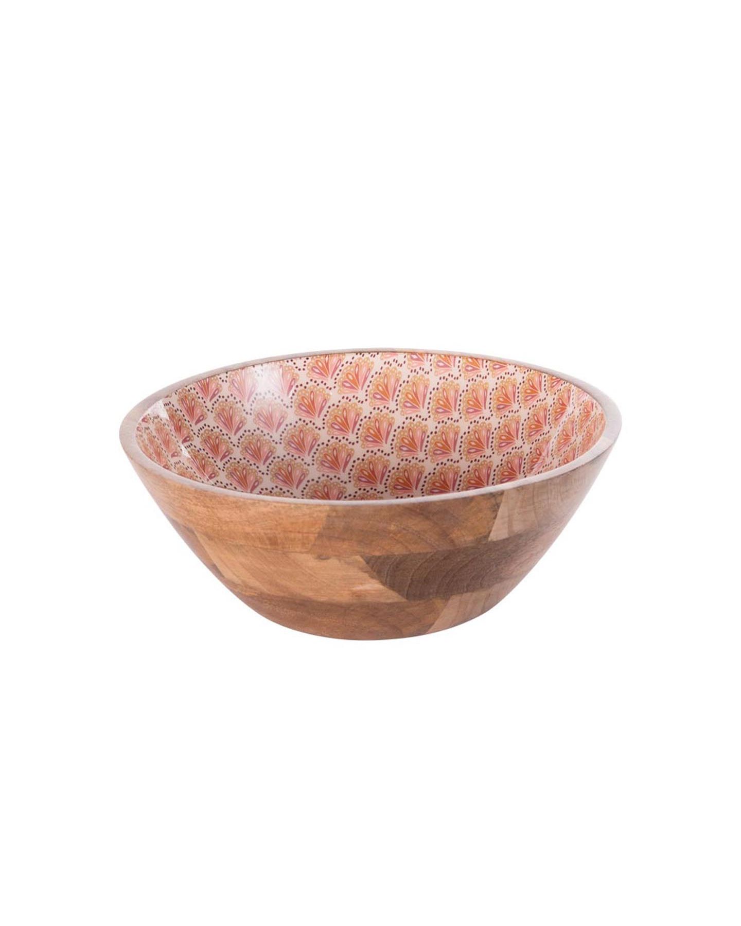 Saladier en bois manguier, émaillé à l'intérieur aux motifs délicats d'inspiration indienne. Avec sa fabrication artisanale et finitions soignées, ce saladier est parfait pour recevoir avec style ou apporter une note raffinée à votre quotidien.