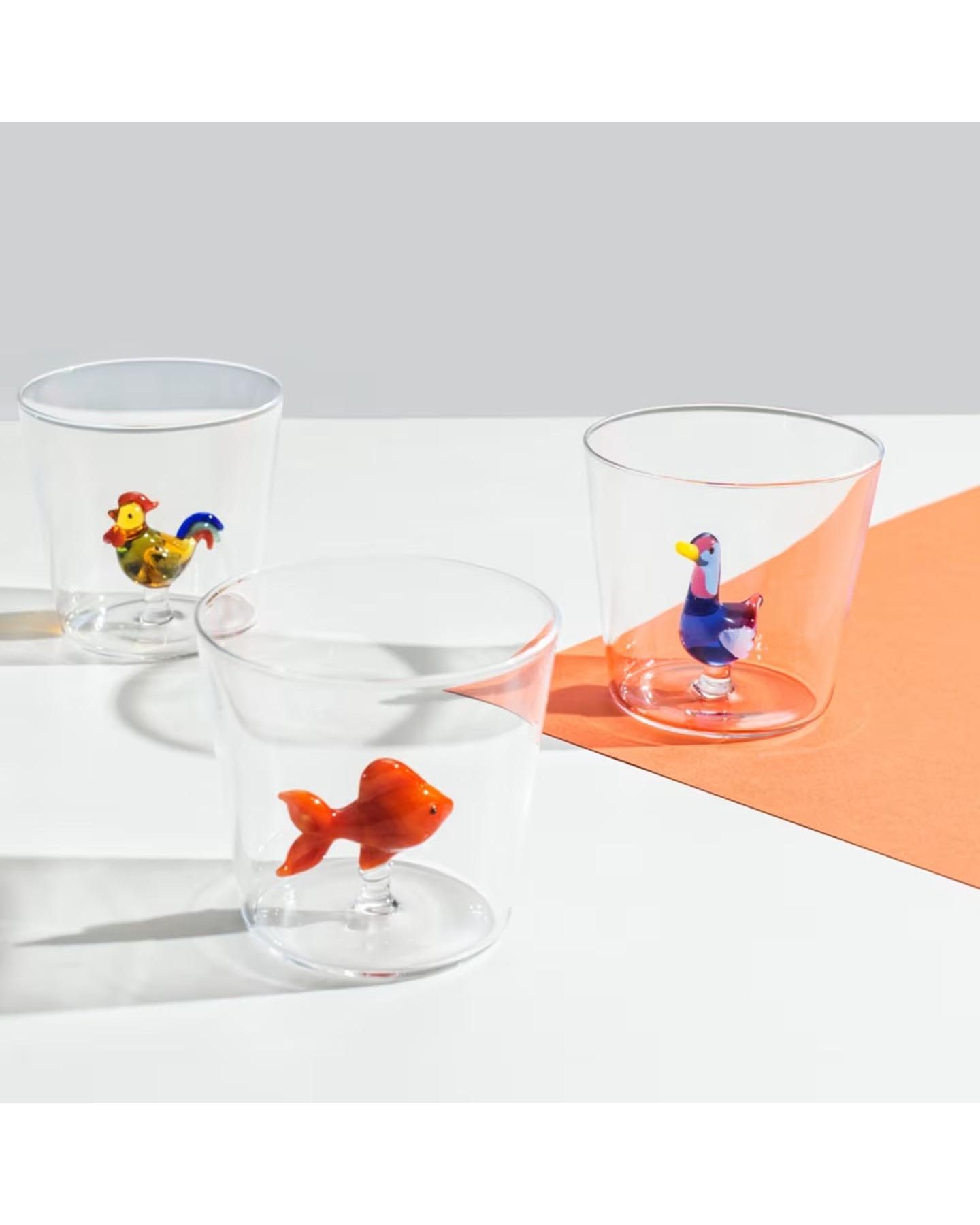 Un gobelet en verre borosilicaté transparent avec un poisson rouge à l'intérieur, faisant partie d'une série très originale élaborée à Milan. Ce gobelet, fabriqué à la main de façon artisanale et avec un travail à la flamme, apportera une touche unique à votre table. A associer avec d'autres articles de la série disponible en magasin ou sur notre site dans la catégorie Art de la Table pour faire le cadeau idéal ! Passe au lave-vaisselle à basse température (40° recommandé).