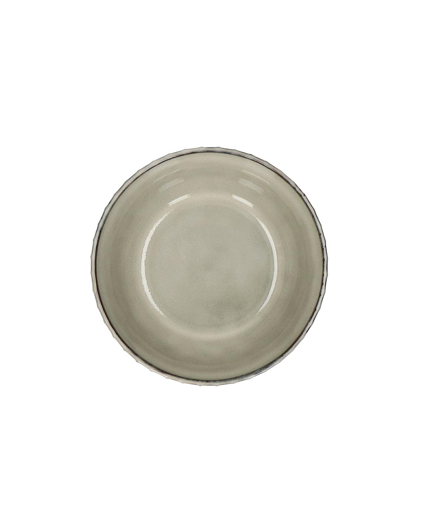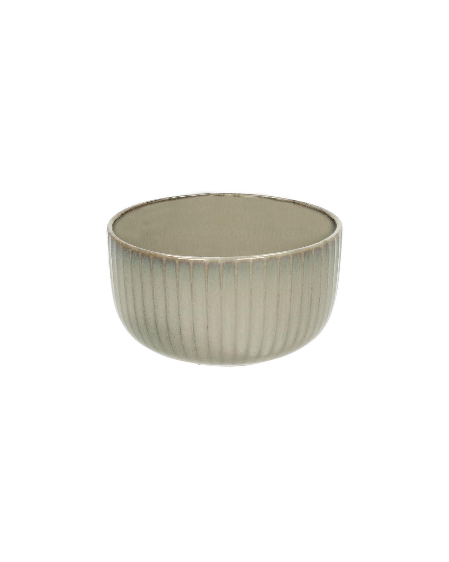 Bol en grès orné d'un relief rayé et d’une glaçure grège, ce qui fait ressortir davantage ses rayures sur les bords. Un bol avec une forme simple et classique, un vrai confort pour tous les jours.