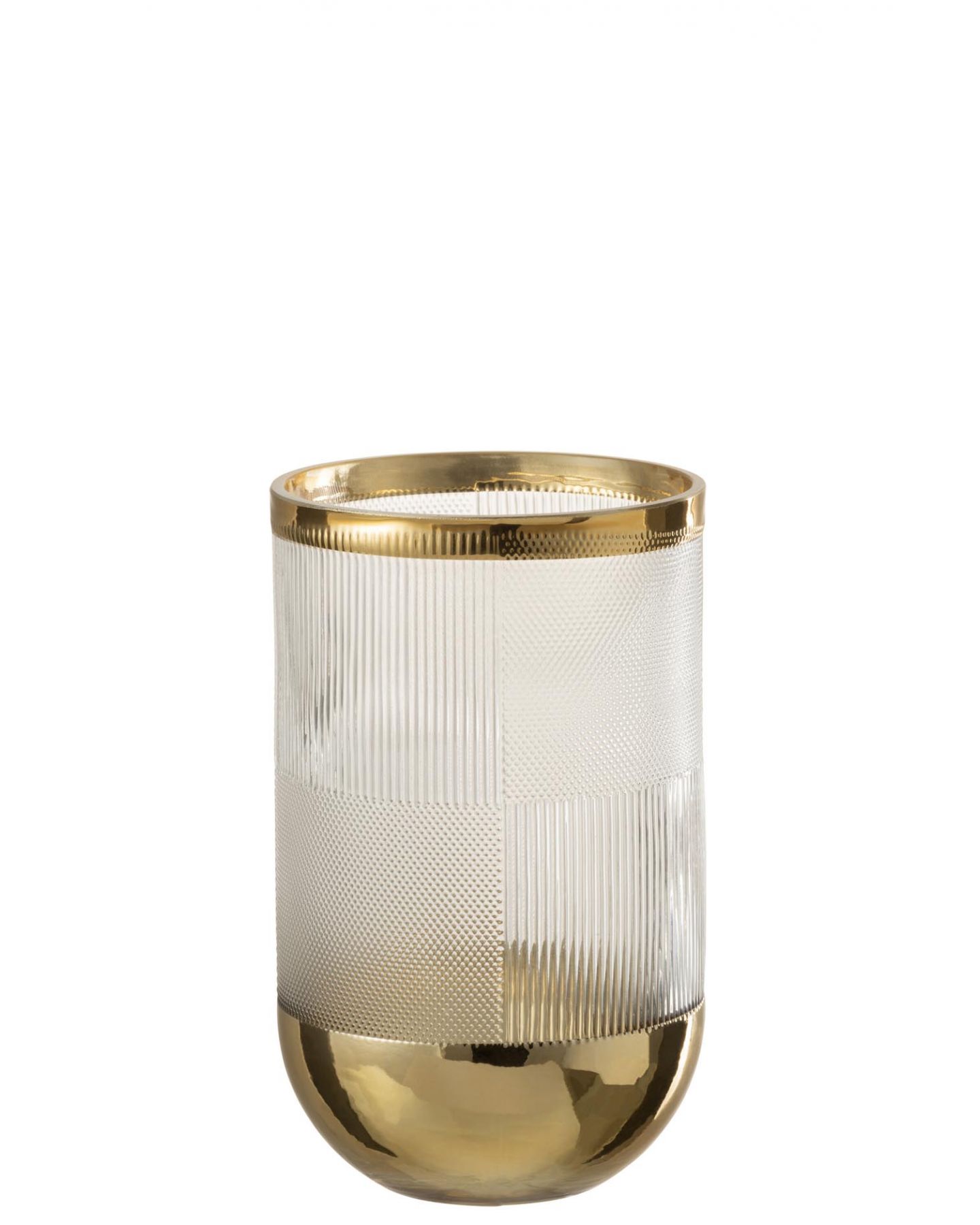 Vase Cylindre Motif Verre Transparent/Or Small ,13x13x21,5cm