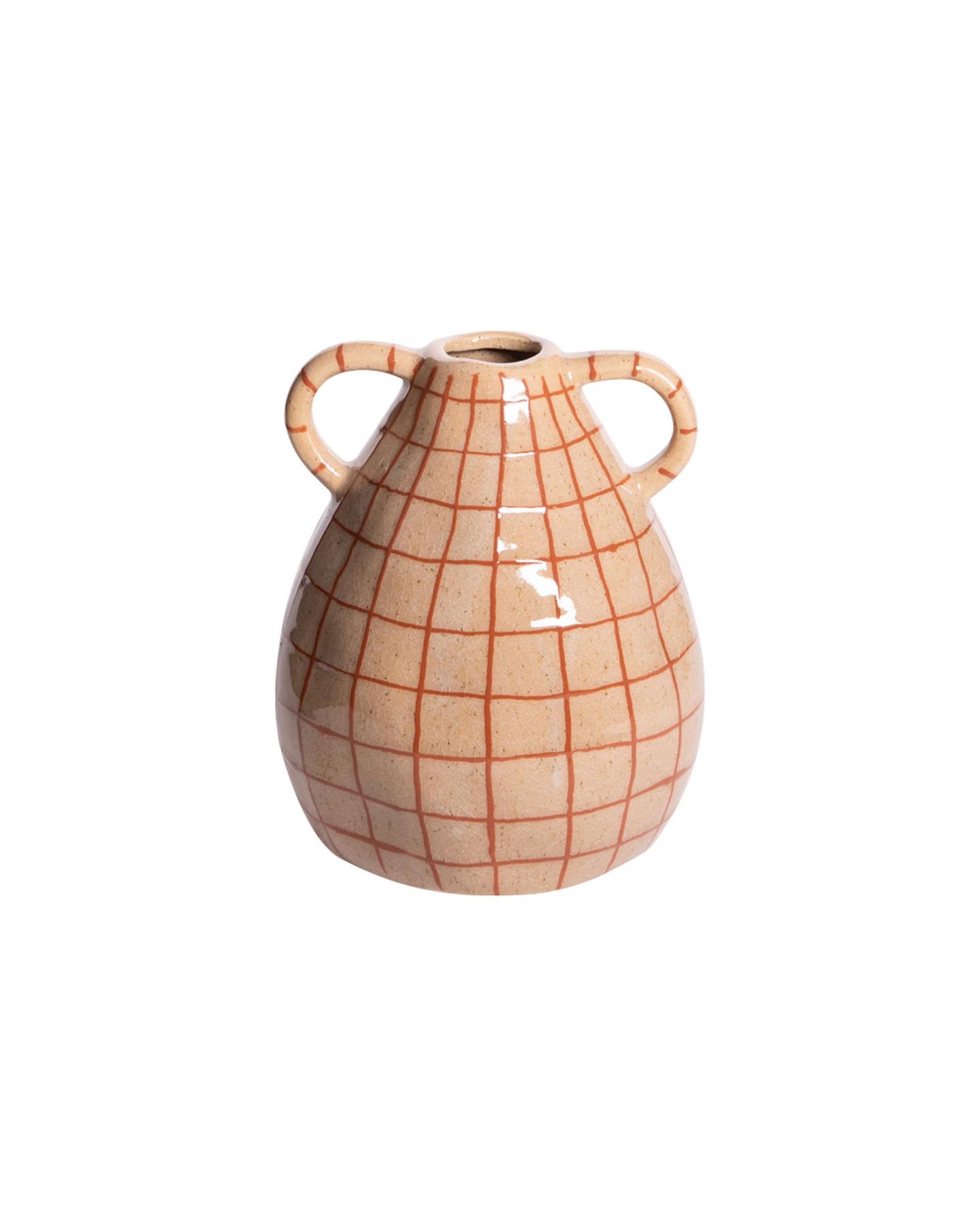Vase en forme d'amphore en céramique beige naturelle aux motifs carreaux oranges faits main incarne l'élégance d'un artisanat vivant, à la croisée des cultures et des inspirations. Entre tradition et modernité, l'amphore affirme son caractère et s'invite aussi bien dans les intérieurs bohèmes que contemporains. Une pièce forte, aussi belle seule qu'en composition, pour sublimer votre espace avec style et chaleur.