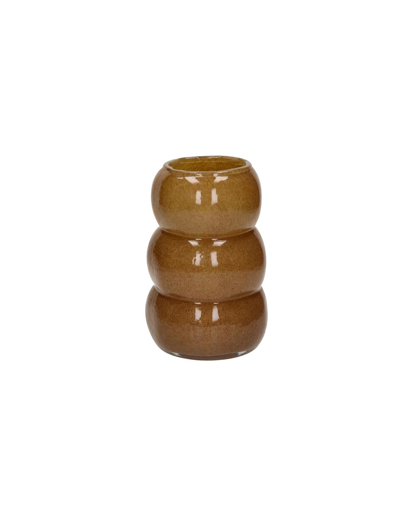 Vase / photophore en verre arrondi marron clair d'une forme originale chenille pour mettre en valeur un bouquet ou à disposer comme simple objet de décoration.