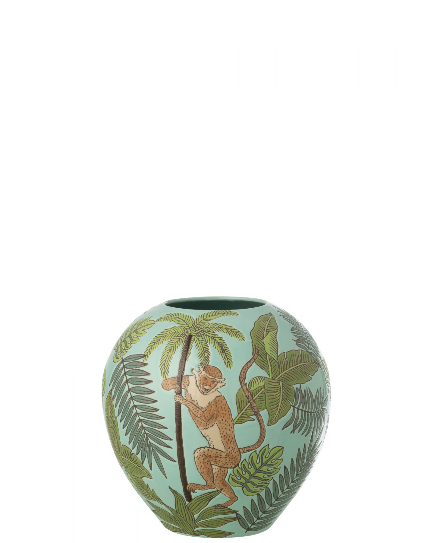 Vase rond décoratif en céramique bleue claire aux motifs de la jungle pour apporter une touche originale à votre décoration. Élégant et unique, le vase parfait pour mettre en valeur un bouquet ou à disposer comme simple objet de décoration.